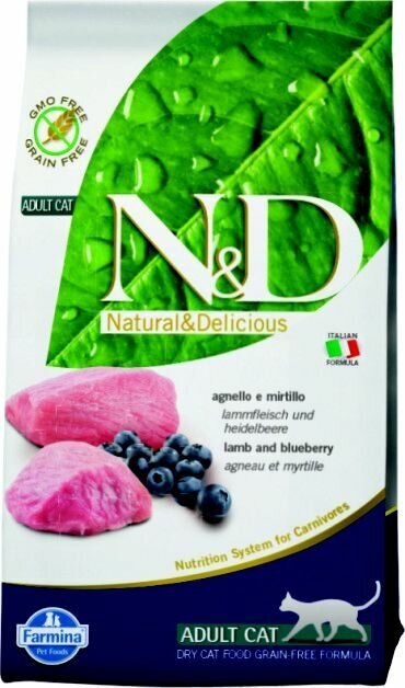 Сухой корм Farmina N&D Ancestral Grain Lamb&Blueberry Adult, для взрослых кошек, низкозерновой, ягненок с черникой, 1,5 кг