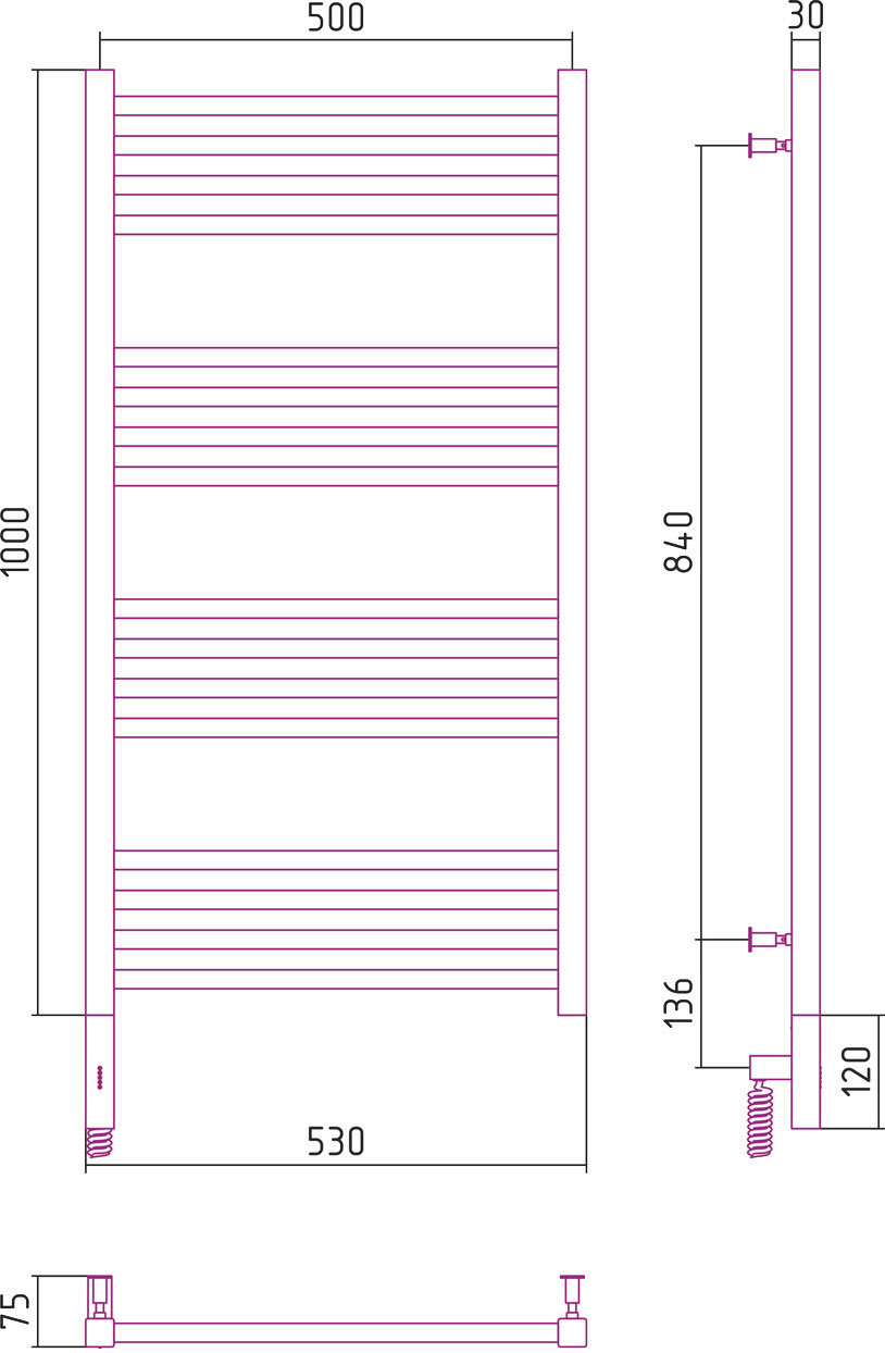 Электрический полотенцесушитель Сунержа Модус 3.0 1000х500 МЭМ левый без покрытия