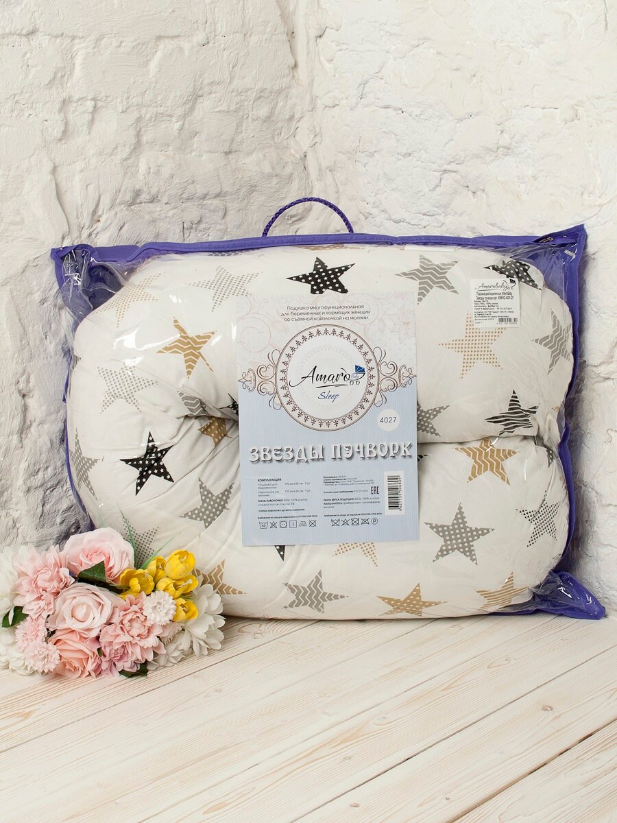 Подушка для беременных AmaroBaby 170х25 (STARS), белый