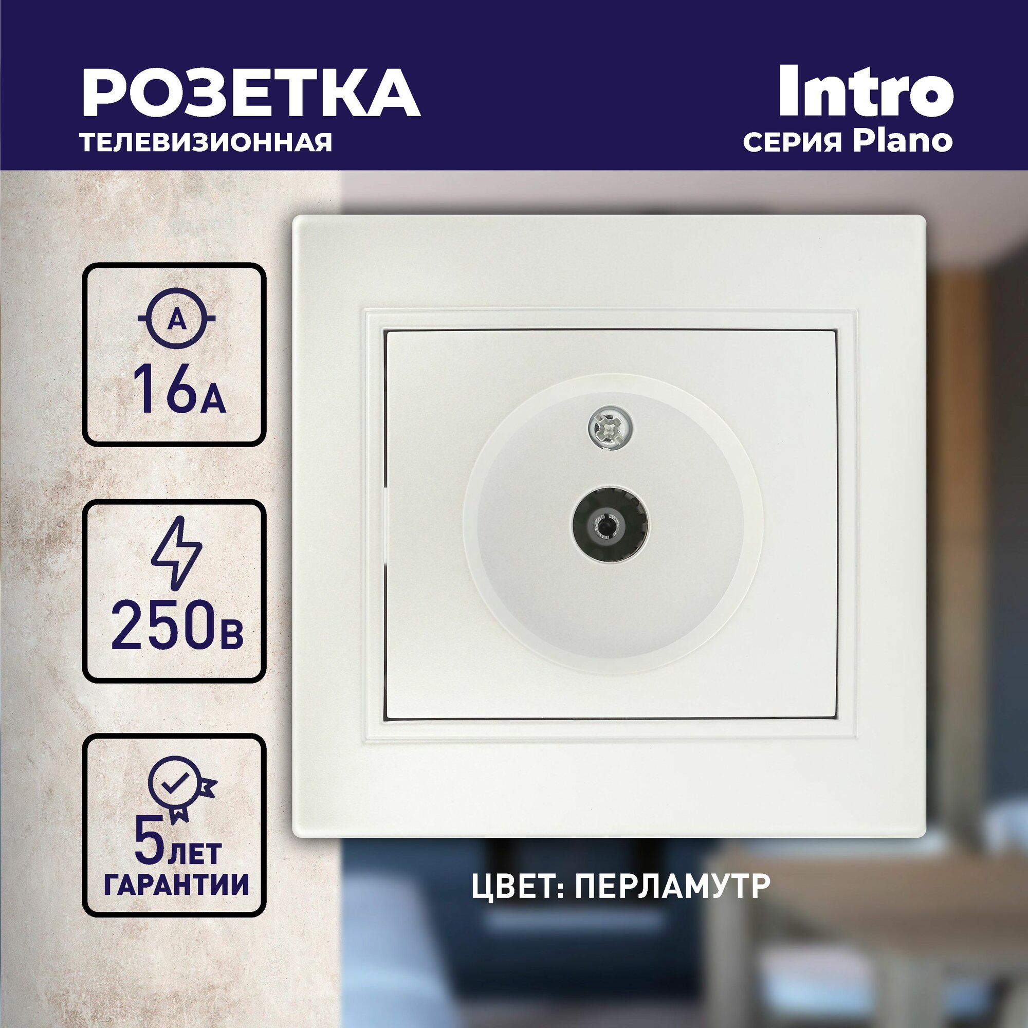 Купить Розетка телевизионная одиночная Intro Plano 1-301-06 TV скрытой установки, IP20, СУ, перламутр