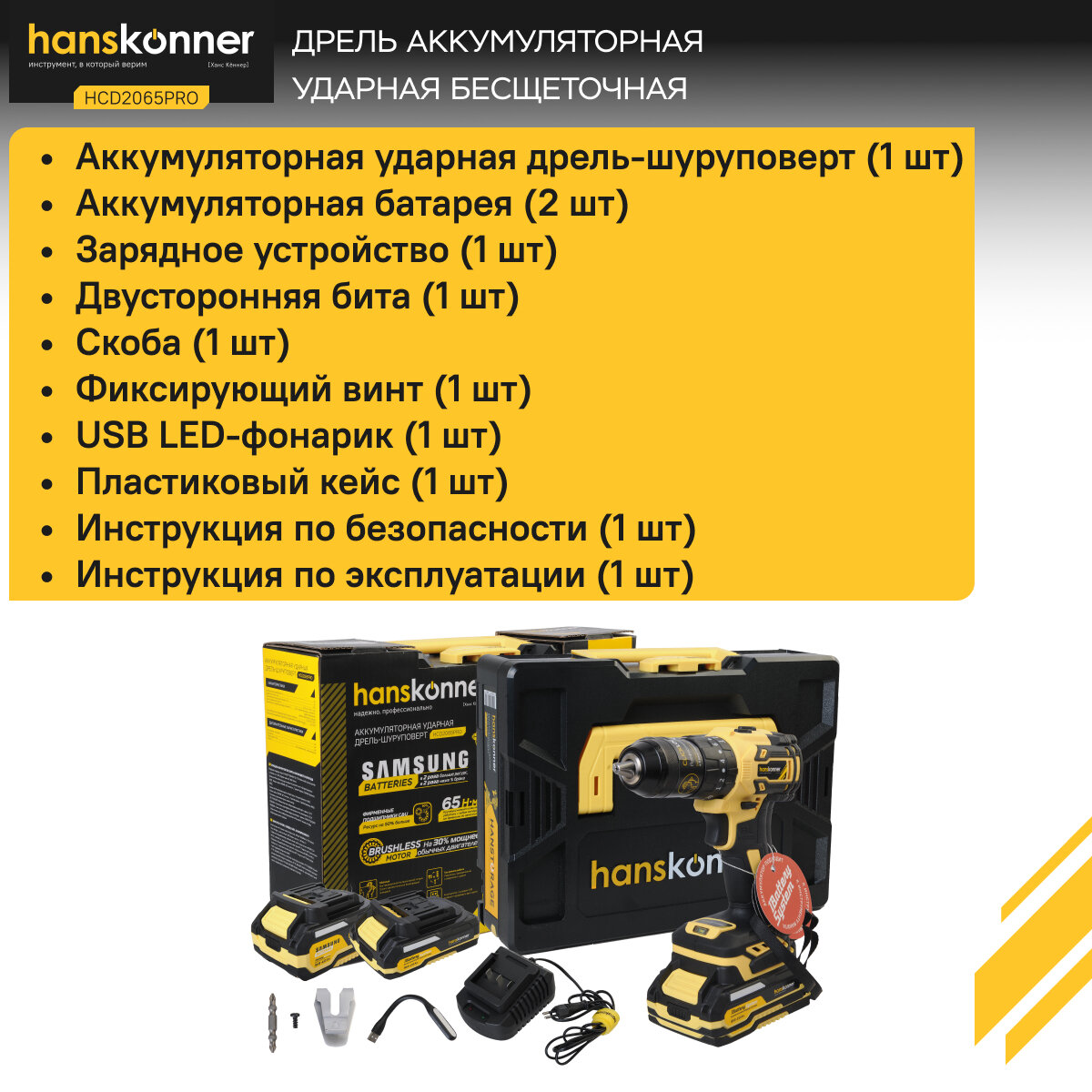 Дрель-шуруповерт Hanskonner HCD2065PRO интересное: