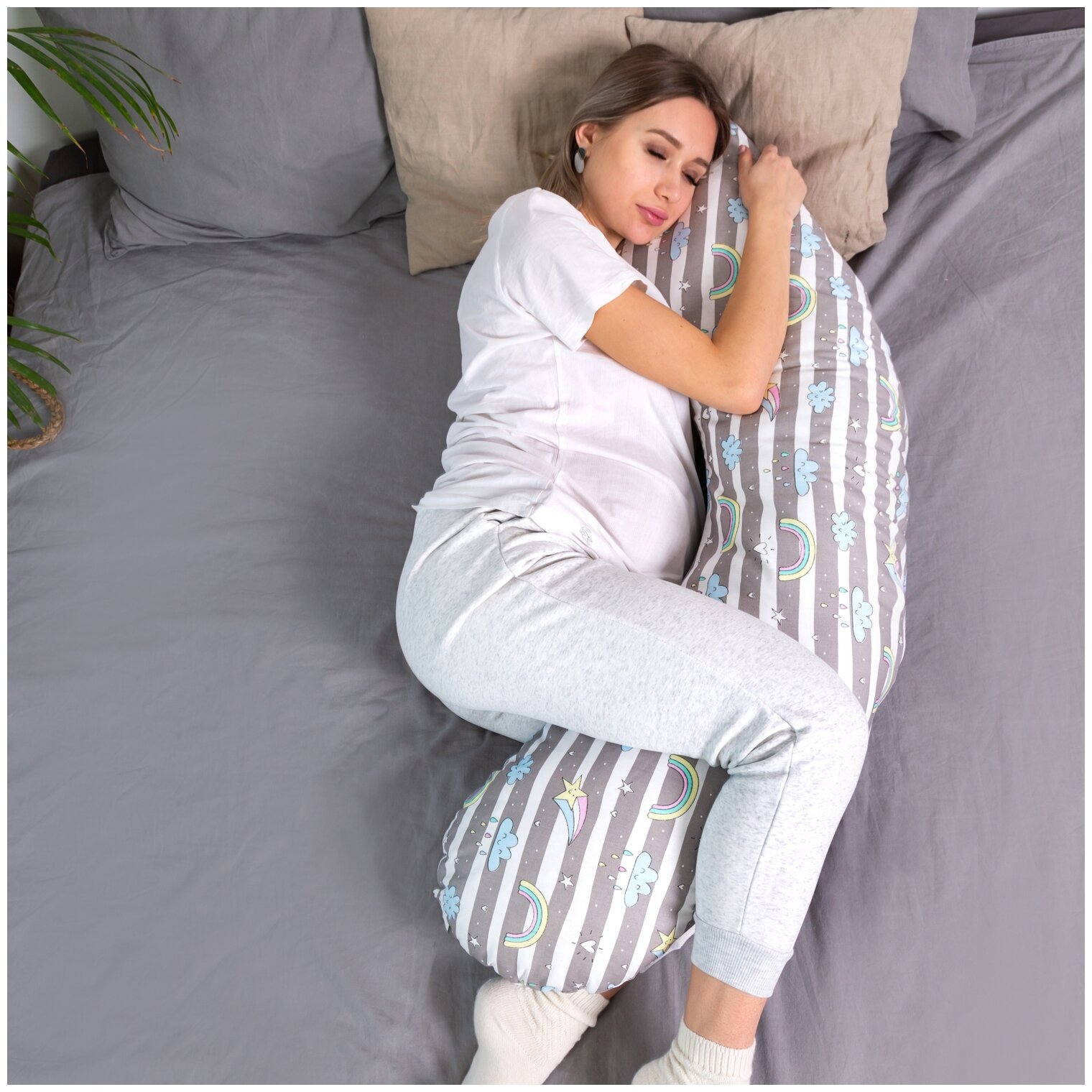Подушка для беременных Облака 170x25 см Серый