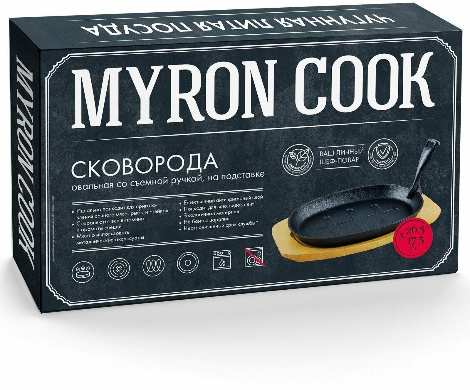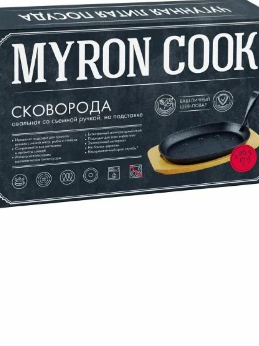 Сковорода MYRON COOK 26,5х17,5 см со съёмной ручкой на подставке