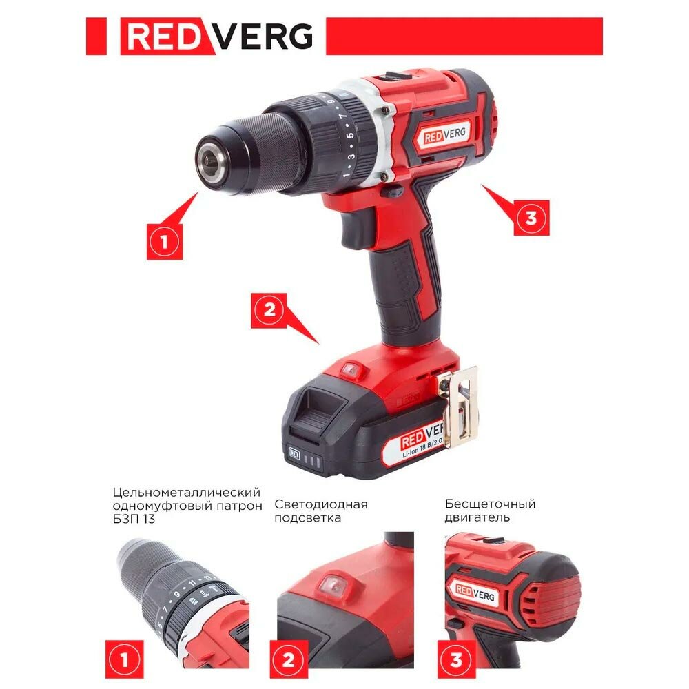 Аккумуляторная дрель-шуруповерт REDVERG RD-IS18BL/U ударная