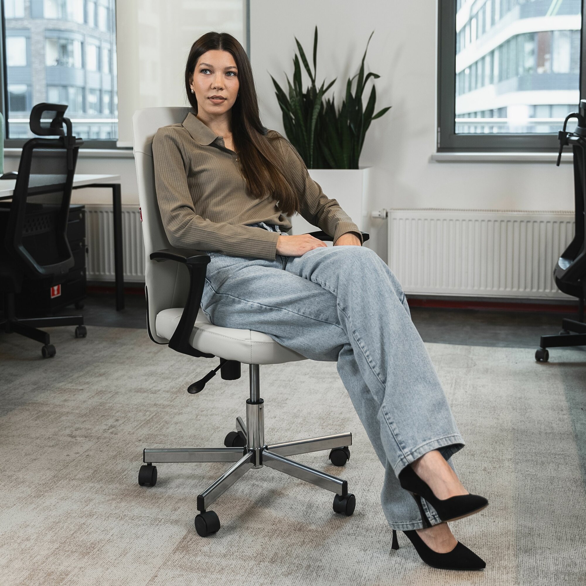 Купить Кресло компьютерное Easy Chair 224, офисный стул на колесиках, искусственная кожа, бежевый