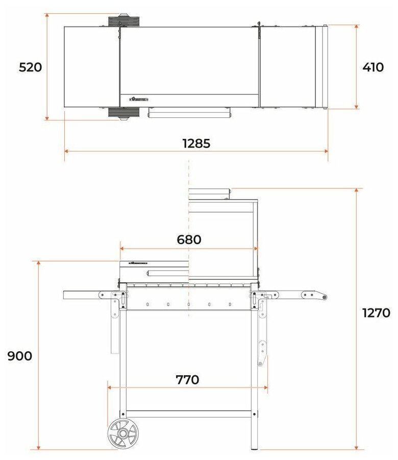 Мангал-гриль передвижной МАН 203, 128*52*90 см