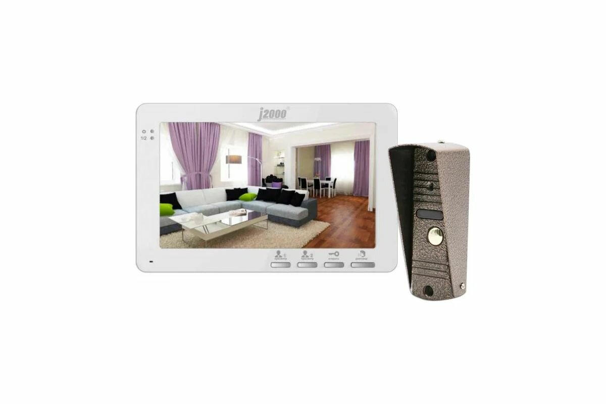 Видеодомофон J2000 DF Кристина, настенный, 2 вызывные панели, цветной экран 7", белый, разрешение 1024х600