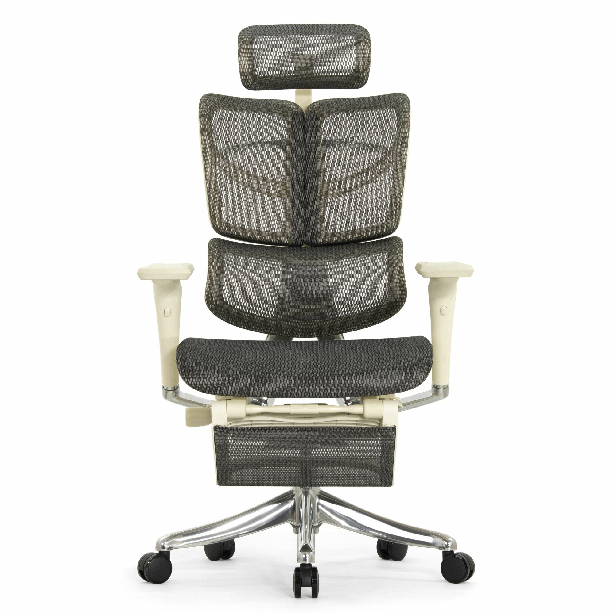 Эргономичное кресло руководителя Falto Expert 2 FLY с подножкой, сетка серая / каркас белая скала / хром