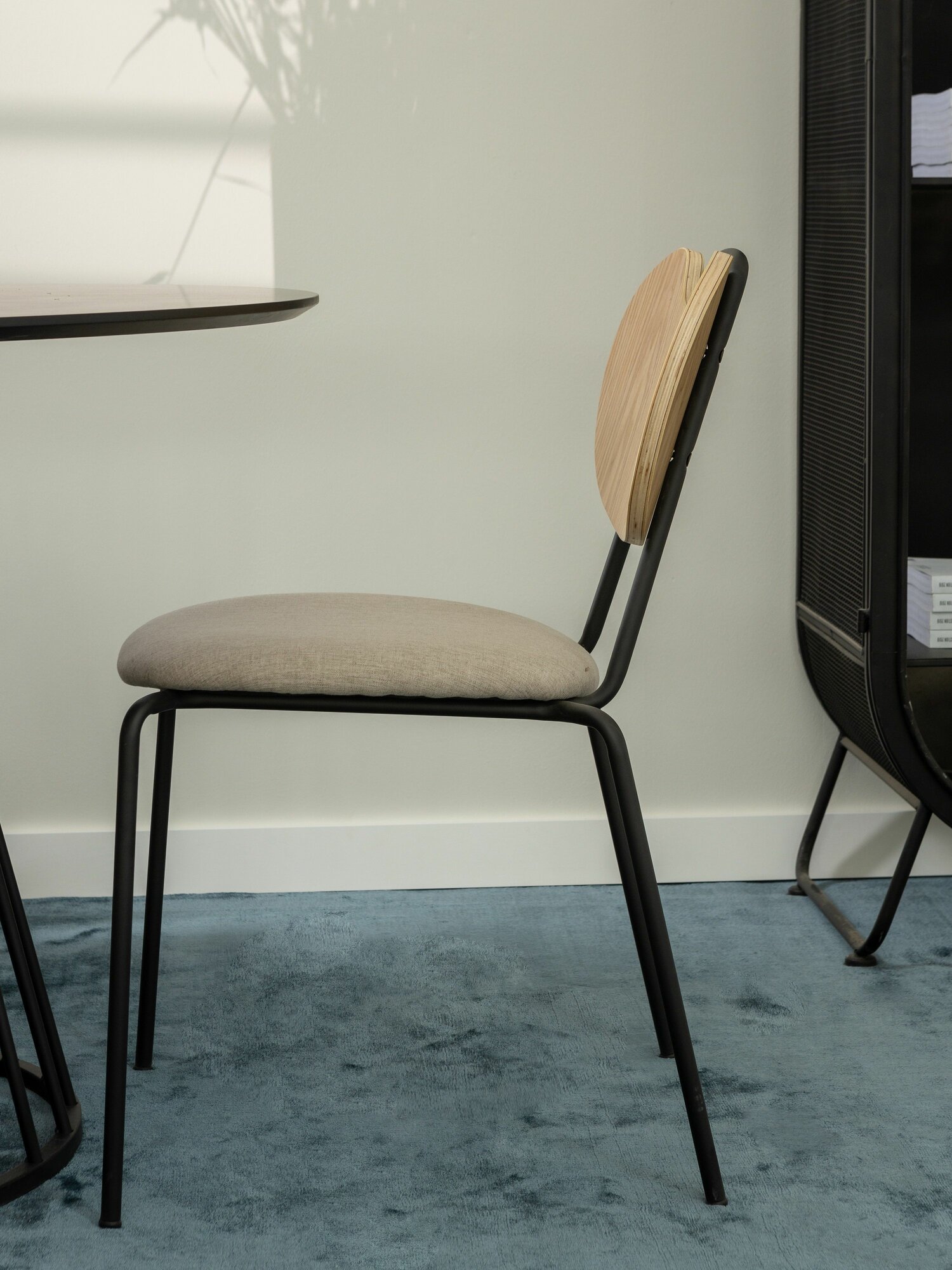 Стул с контрастным кантом Pea, велюр, темно-серый/бежевый