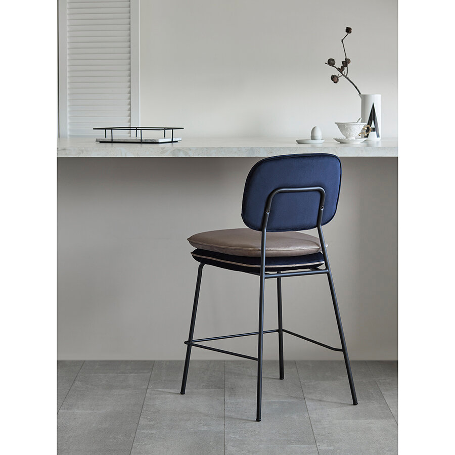 Стул полубарный с контрастным кантом Pea кухонный мягкий интерьерный для лофта велюр Bergenson Bjorn BB0000692