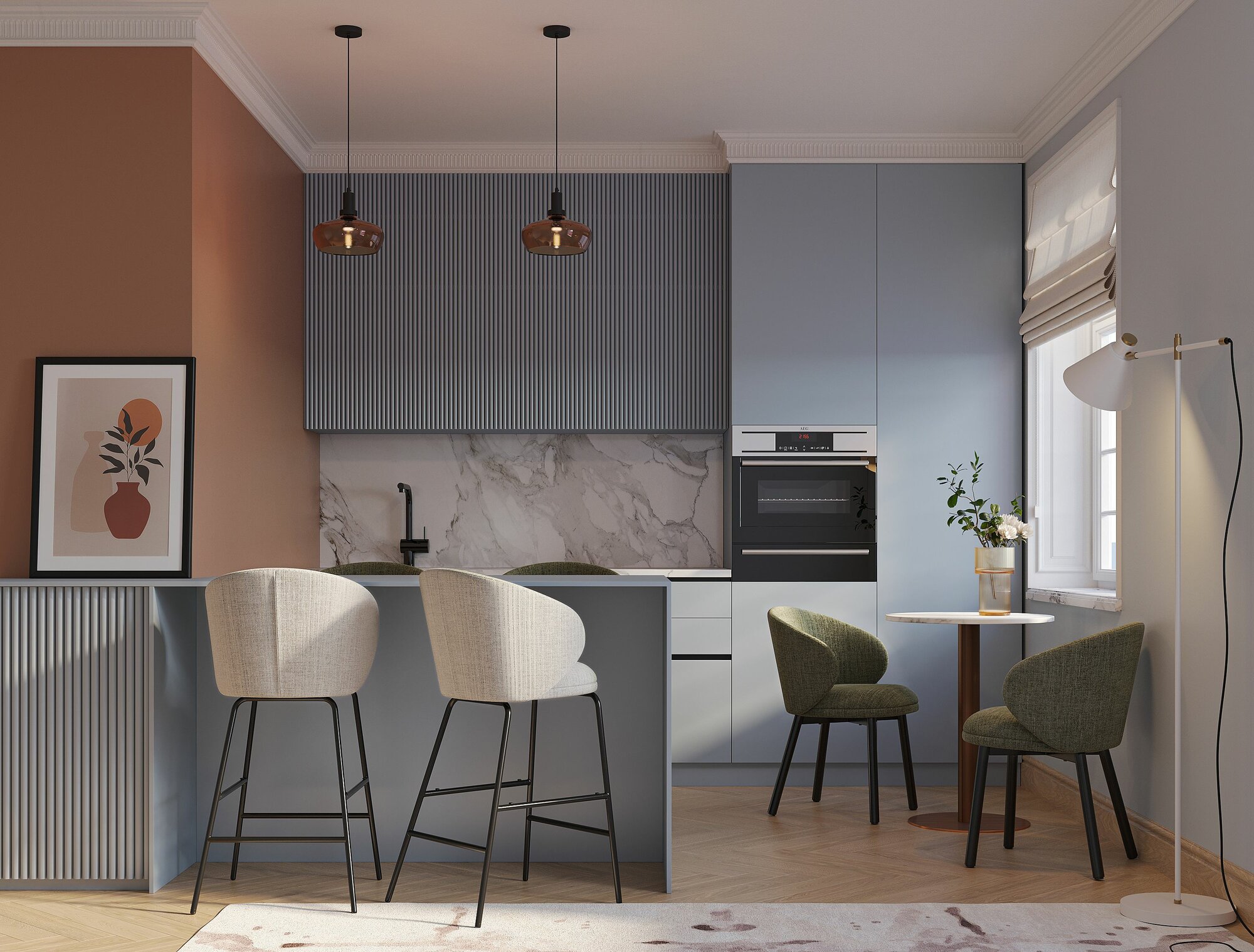 Стул полубарный Pea мягкий для кухни лофта интерьерный велюр Bergenson Bjorn BB0000623