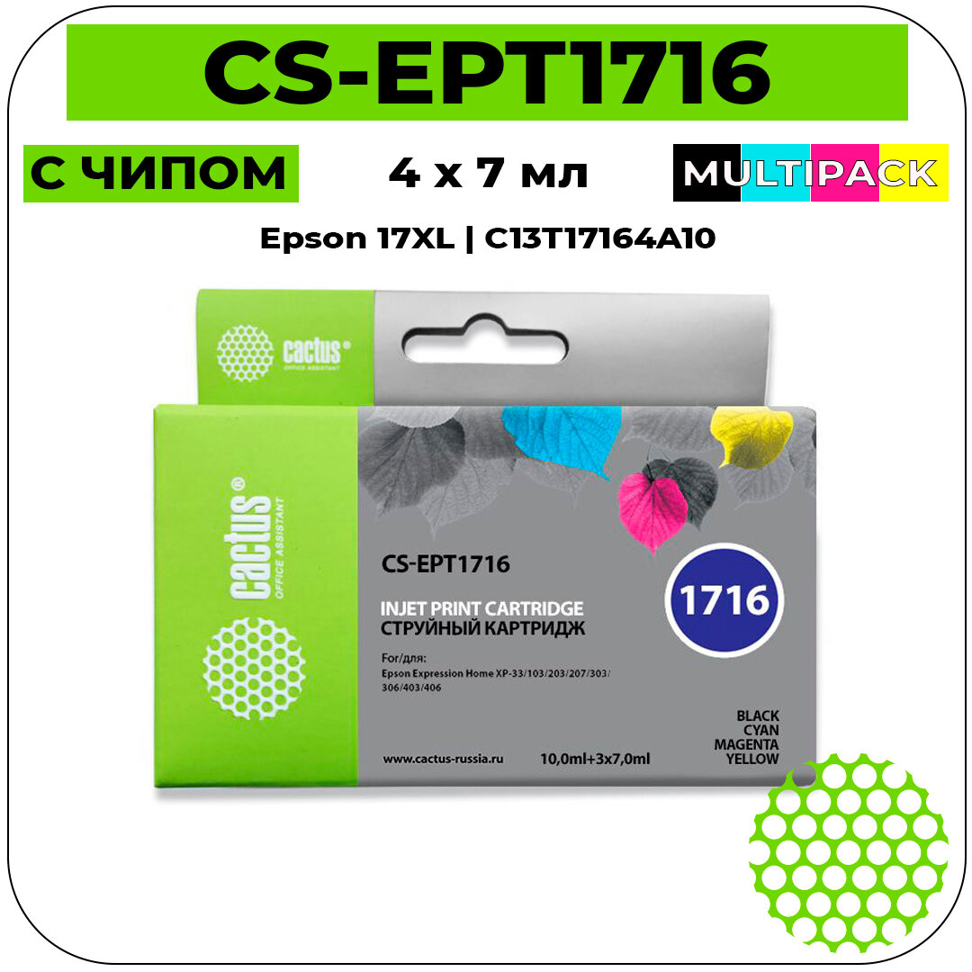 Купить Картридж струйный Cactus CS-EPT1716 многоцветный для Epson Expression Home XP-33/103/203 Комплект ка