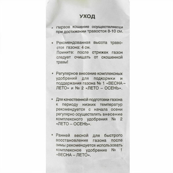 | Назначение газона | декоративный / спортивный / универсальный |