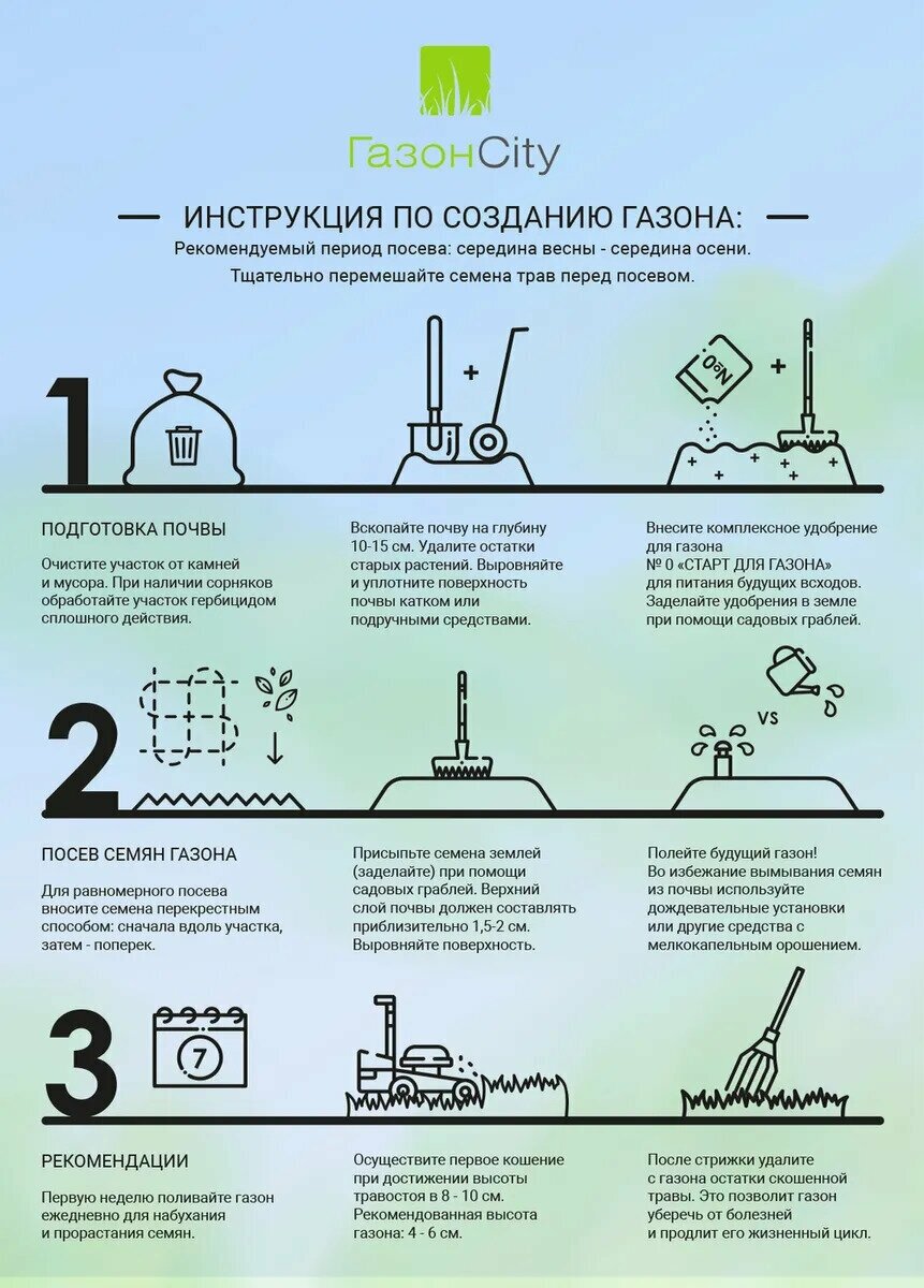 | Назначение газона | декоративный / спортивный / универсальный |