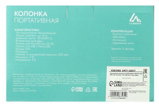 Ниже Вы можете прочитать отзывы на Портативная колонка Luazon Home LAB-69, 3 Вт, 600 мАч, AUX, USB, FM, microSD, хаки, ознакомится с подробными характеристиками, посмотреть интересные обзоры и фотографии на Портативная колонка Luazon Home LAB-69, 3 Вт, 600 мАч, AUX, USB, FM, microSD, хаки.