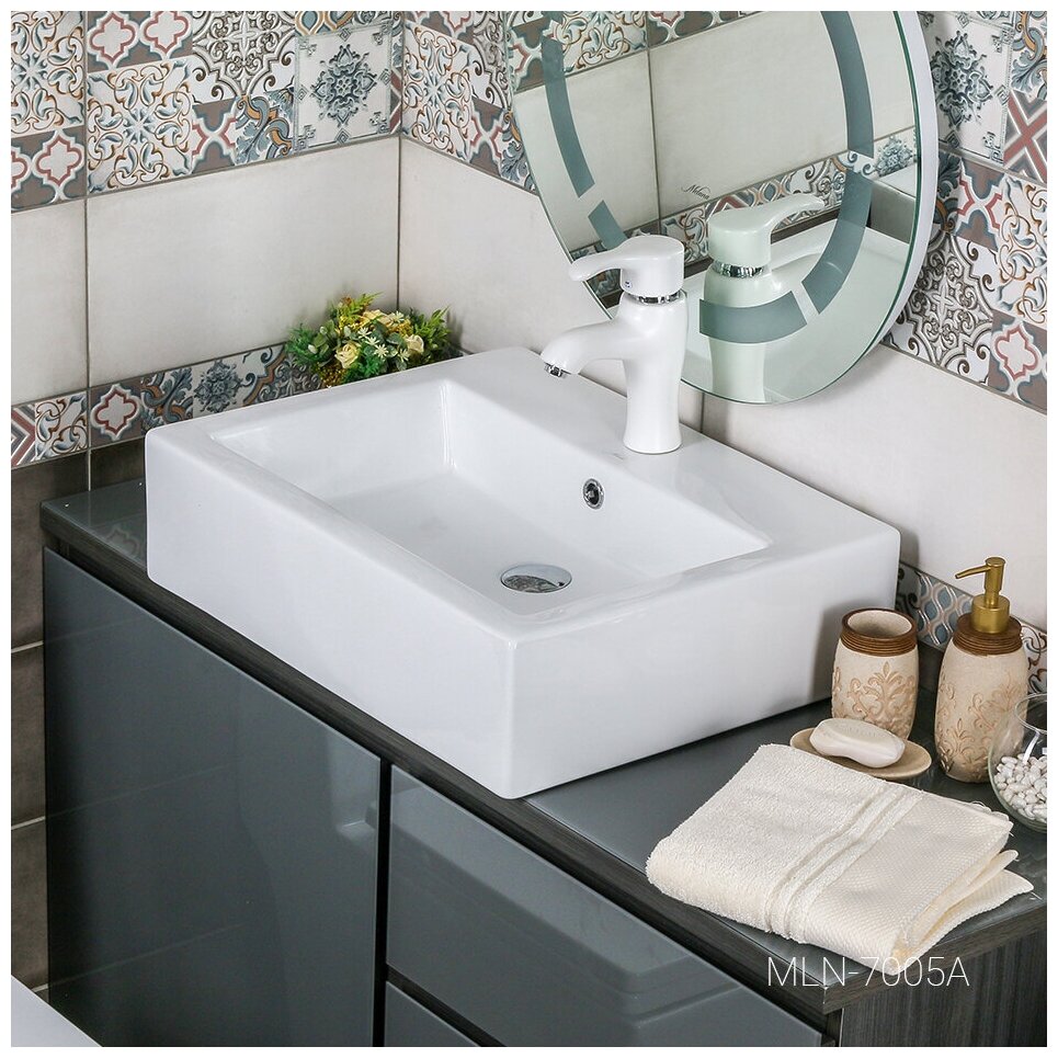 Раковина для ванной MLN-A054 накладная, квадратная, белая интересное:
