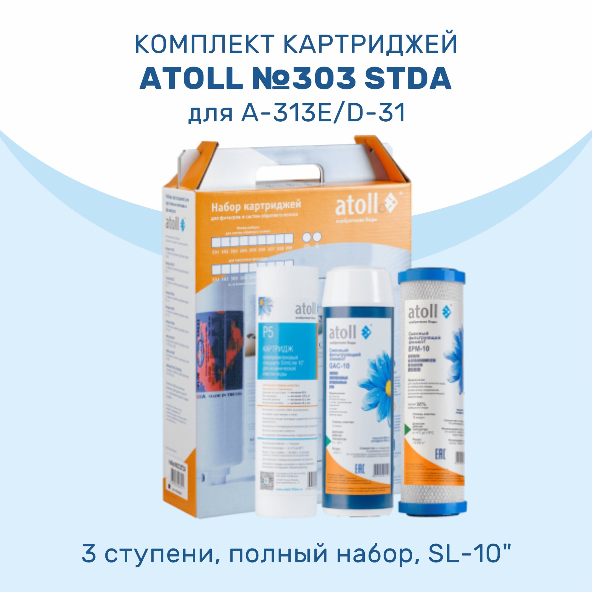 Купить Набор картриджей для фильтра воды atoll №303 STDA (для D-31, A-313E, A-314E)