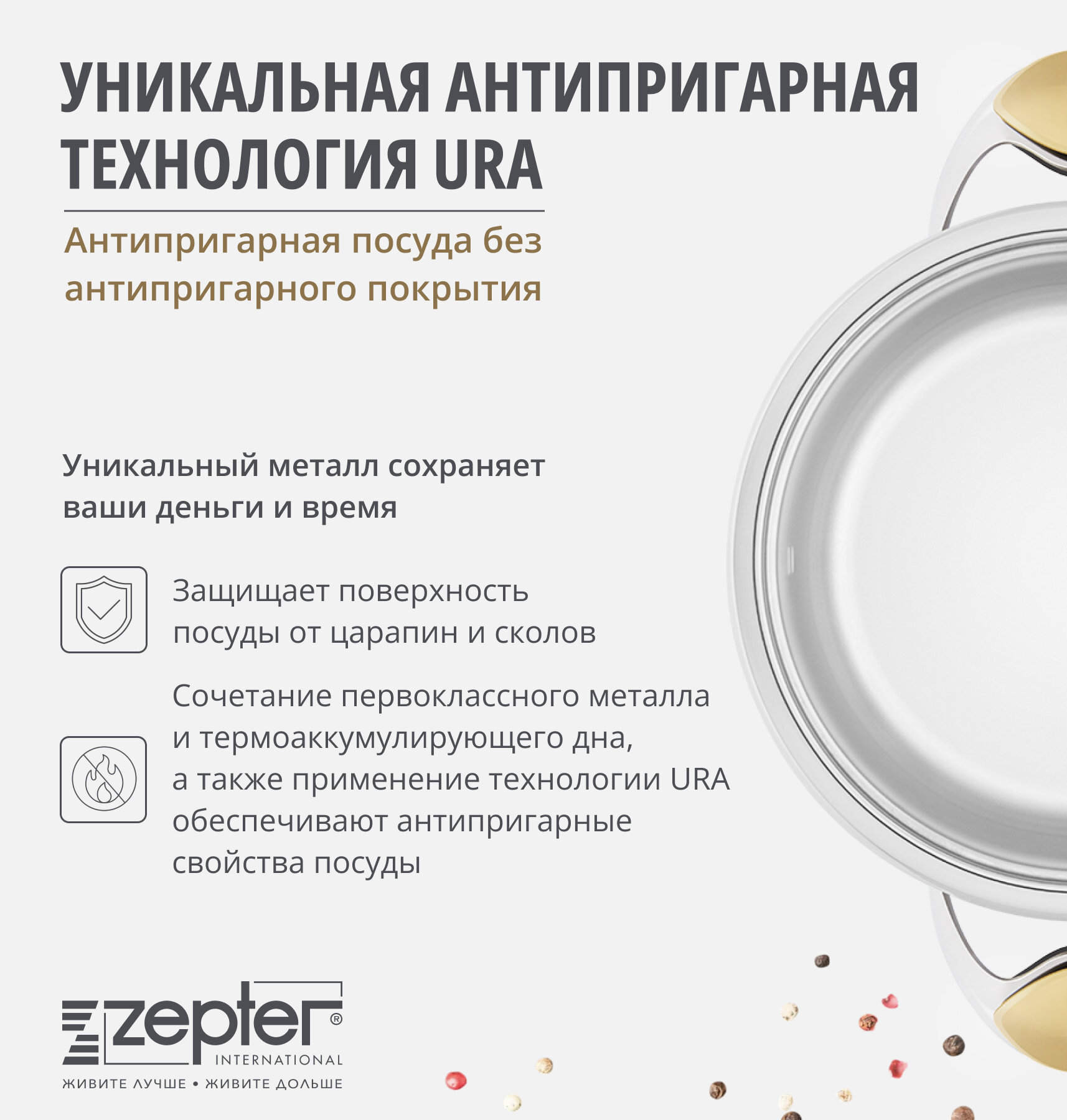 Купить Сотейник Zepter 2л с крышкой и толстым дном, антипригарный технология URA/ 20см