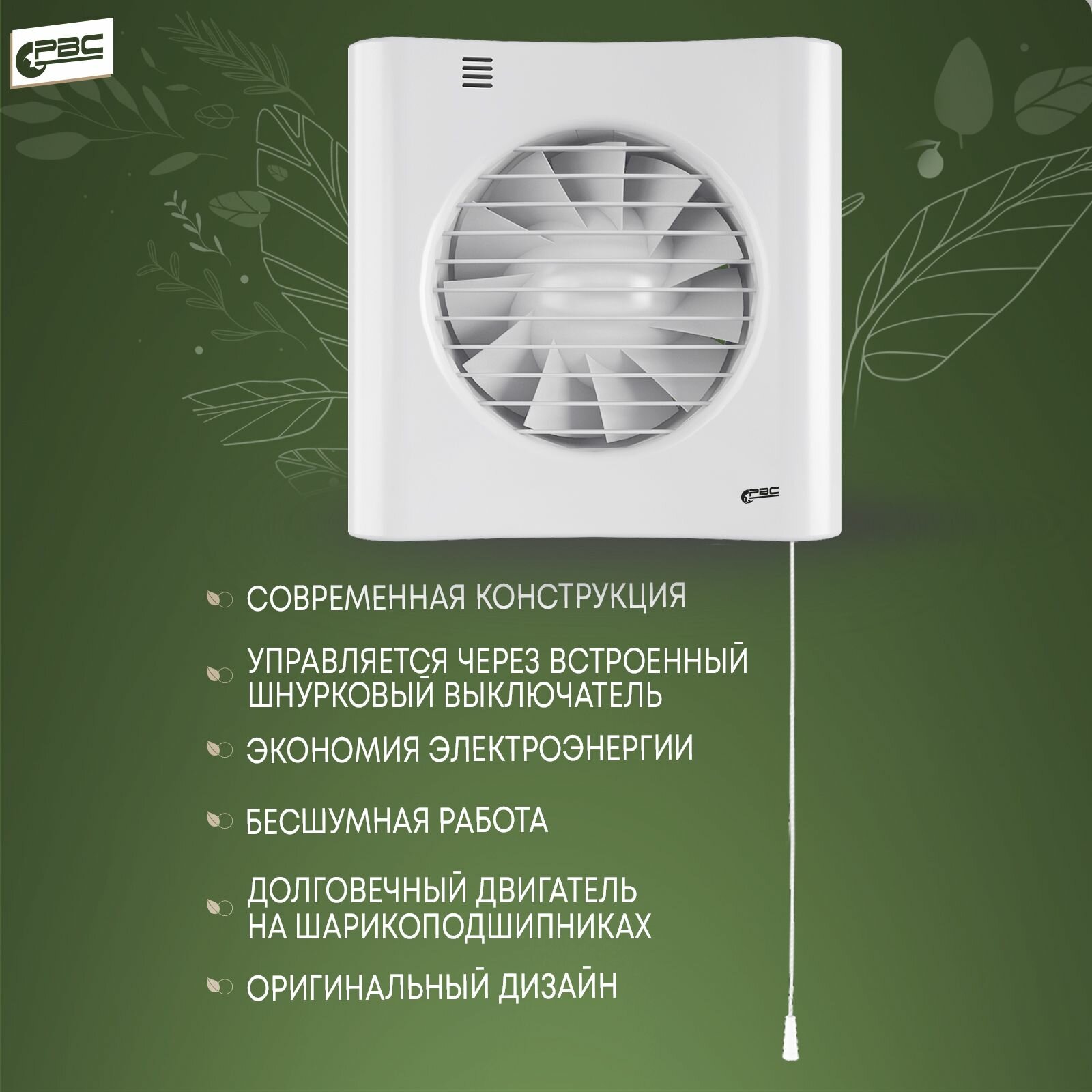 Вентилятор вытяжной Рвс Сеат 125 энергосберегающий, 17 Вт, 28 дБ, 177 м3/ч, шнурковый выключатель