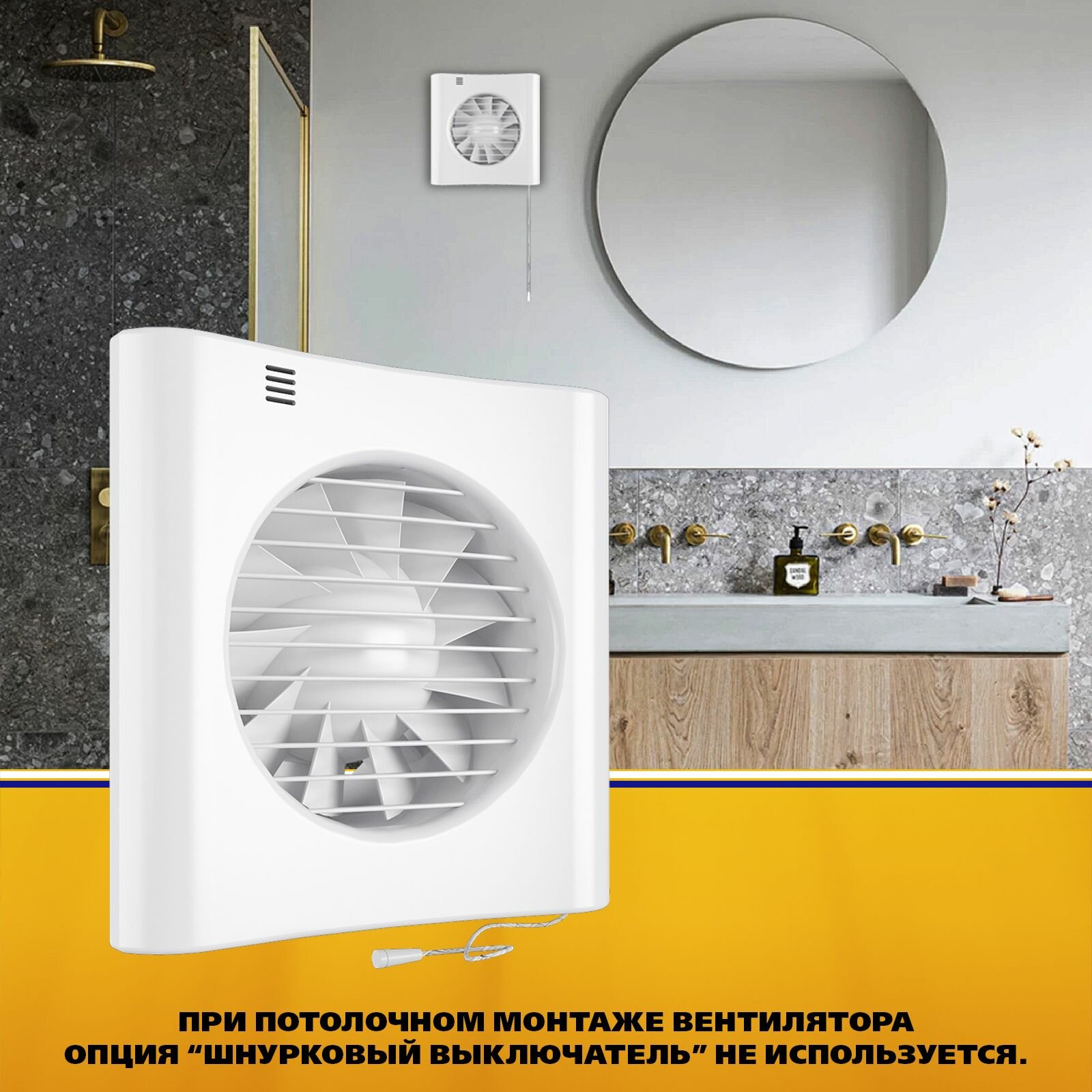 Вентилятор осевой / вытяжка в ванную / вытяжка в туалет d100 мм, белый