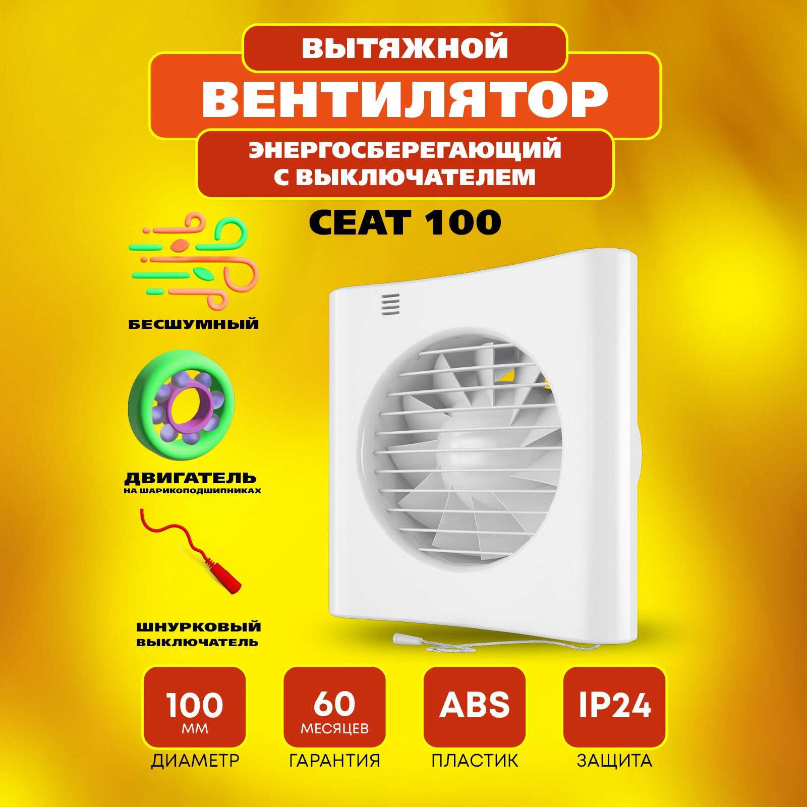 Купить Вентилятор вытяжной бесшумный Сеат 100 с выключателем