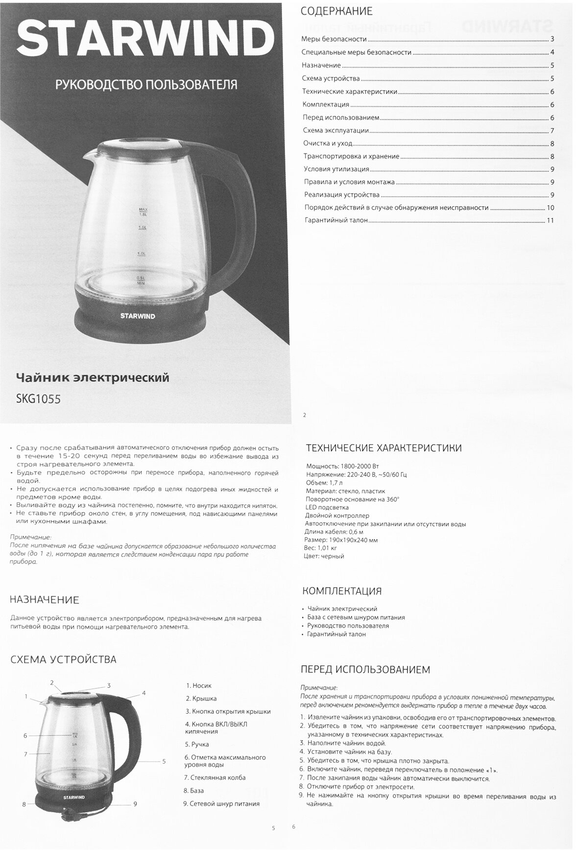 Чайник электрический Starwind SKG1055 черный (стекло) интересное: