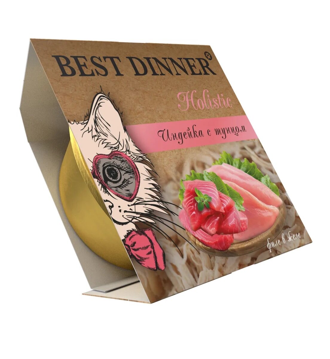 Корм влажный для кошек и котят Бест Диннер (Best DInner) Холистик мясо филе тунца с цыпленком в соусе, пауч (18шт*70гр)