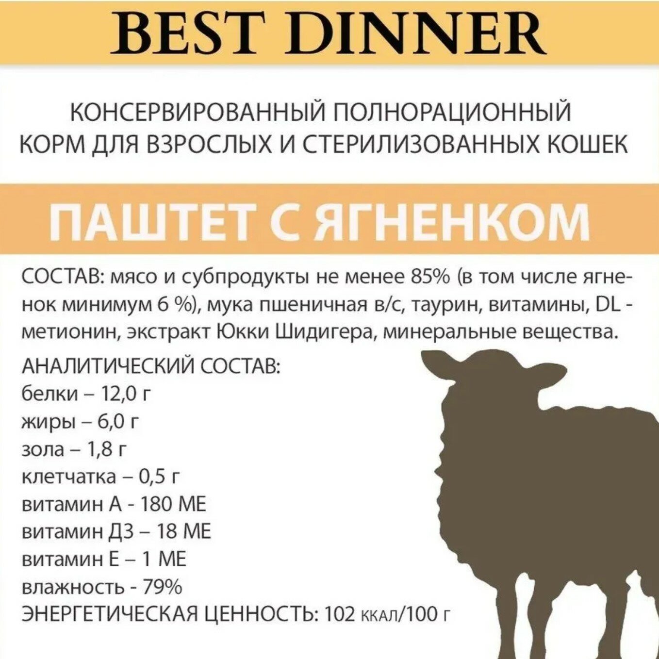 Купить Best Dinner Нежный паштет для кошек с ягненком 100г (14 штук)