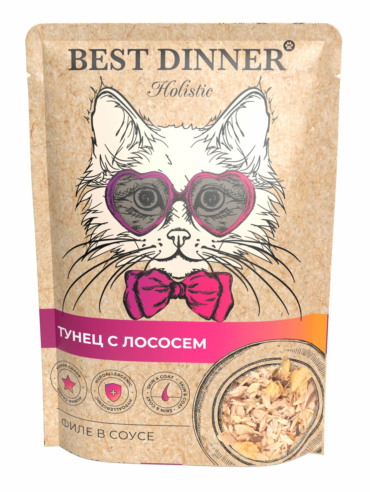 Купить Влажный корм BEST DINNER 70гр для любых кошек Holistic тунец с лососем в соусе (пауч)