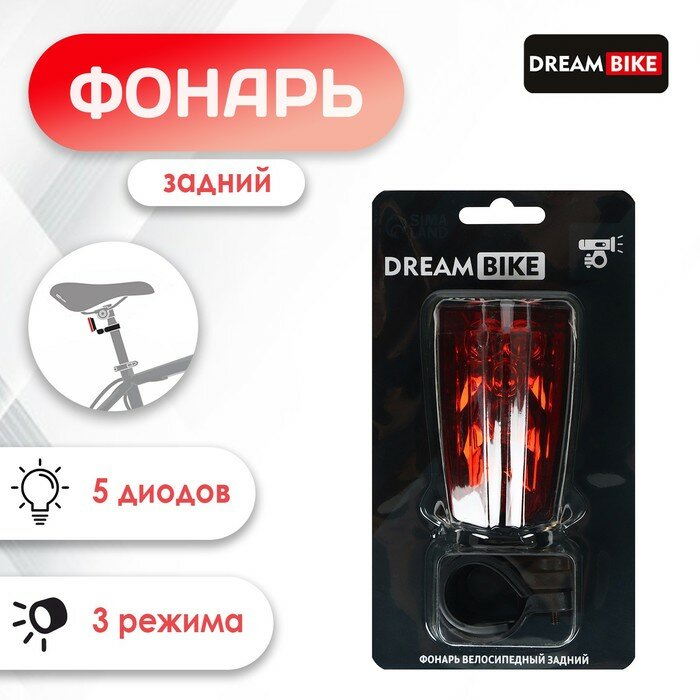 Фонарь велосипедный задний Dream Bike, Jy-2l-a, 5 диодов, 3 режима Dream Bike 7305385 .