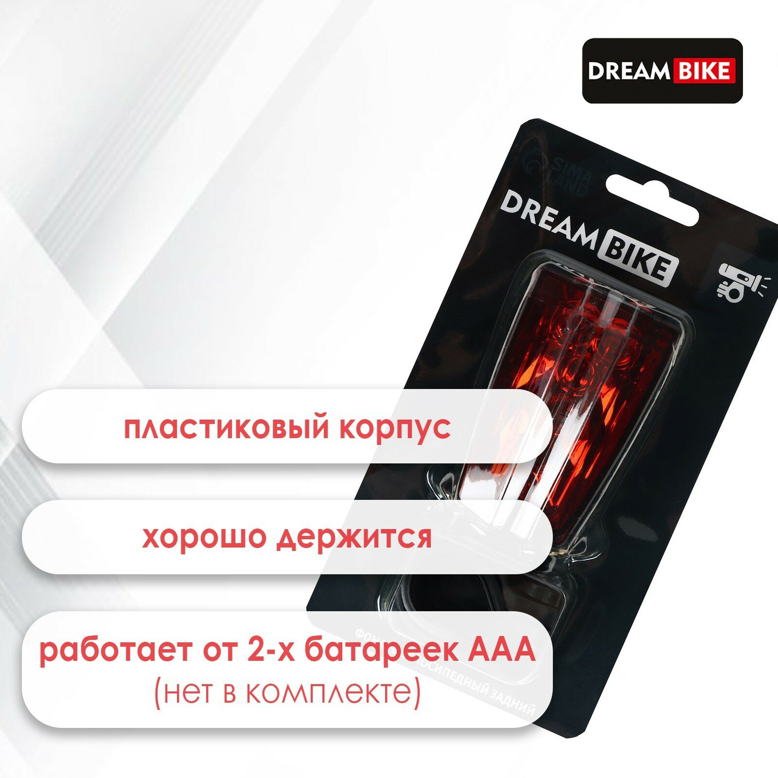 Фонарь велосипедный задний Dream Bike, JY-2L-A, 5 диодов, 3 режима