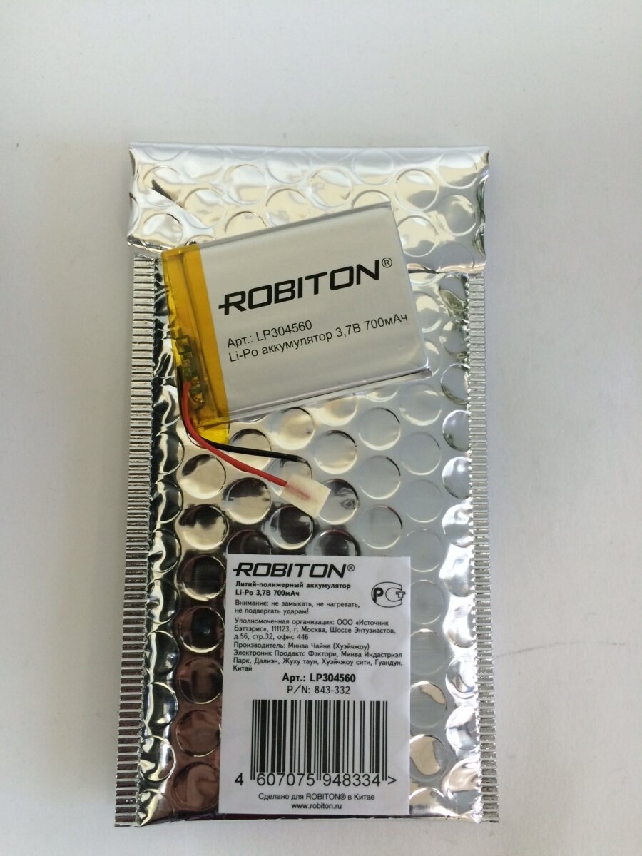 Литий-полимерный аккумулятор Robiton LP443442 600 мАч 3,7 В, с платой защиты, размеры 4.4 x 34 x 42 мм интересное: