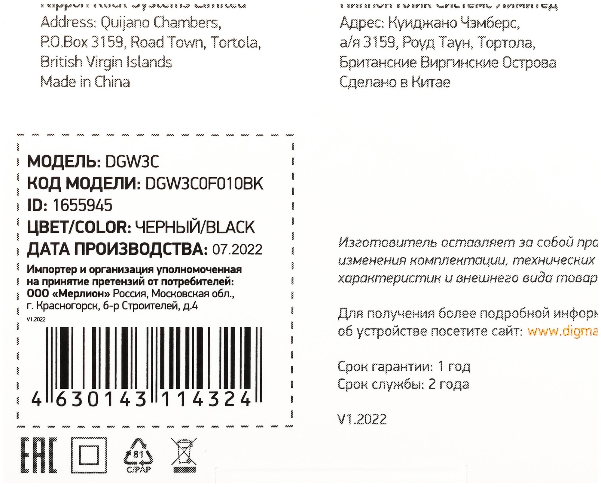 Зарядное устройство Digma DGW3C 3A PD Black DGW3C0F010BK