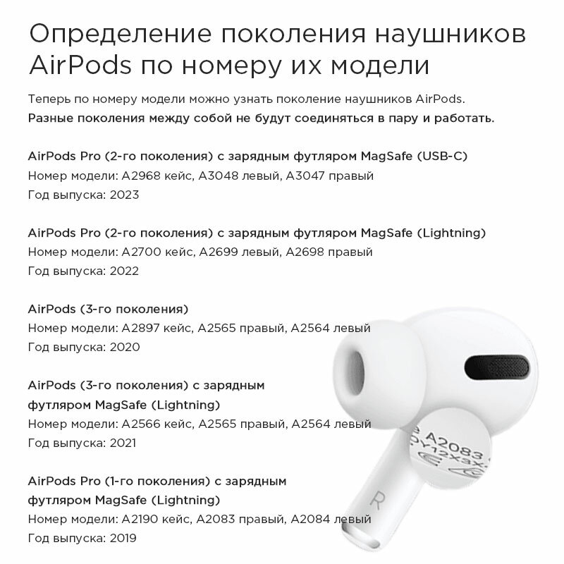 | Дополнительная информация | совместим с зарядным чехлом AirPods Pro 2 (модель A2700); не работает с кейсом AirPods Pro первого поколения (A2190) |