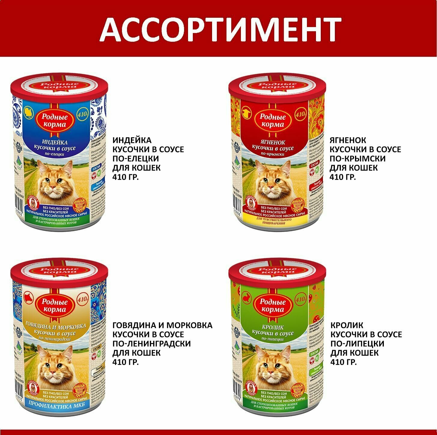Родные корма 410 г полнорационный консервированный корм для кошек с ягненком кусочки в соусе по-крымски 1 шт