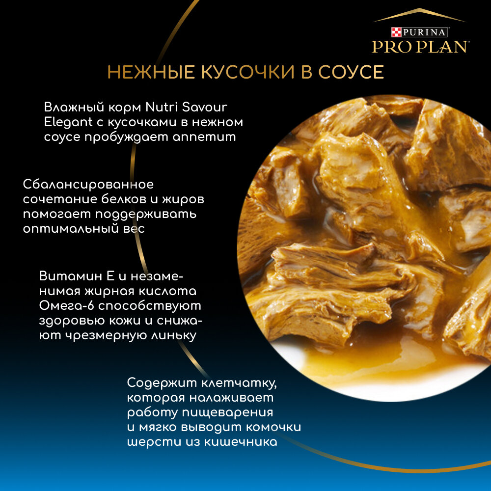 Pro plan Nutri Savour Elegant - консервы для взрослых кошек с чувствительной кожей, нежные кусочки с треской, в соусе, пауч, 85г