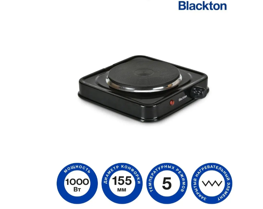Электрическая настольная плита Blackton Bt HP114B Черная / Мощность 1000 Вт / 5 режимов