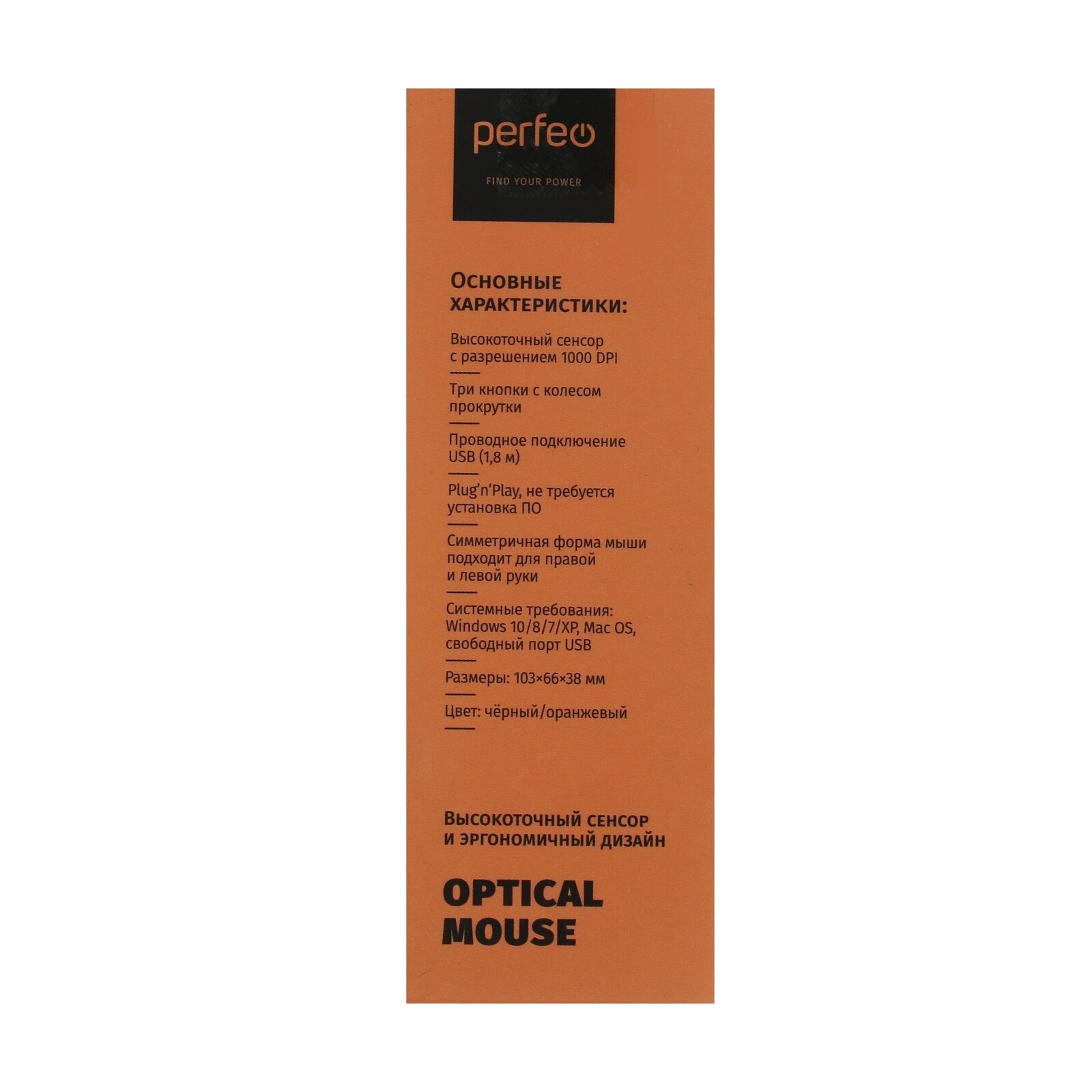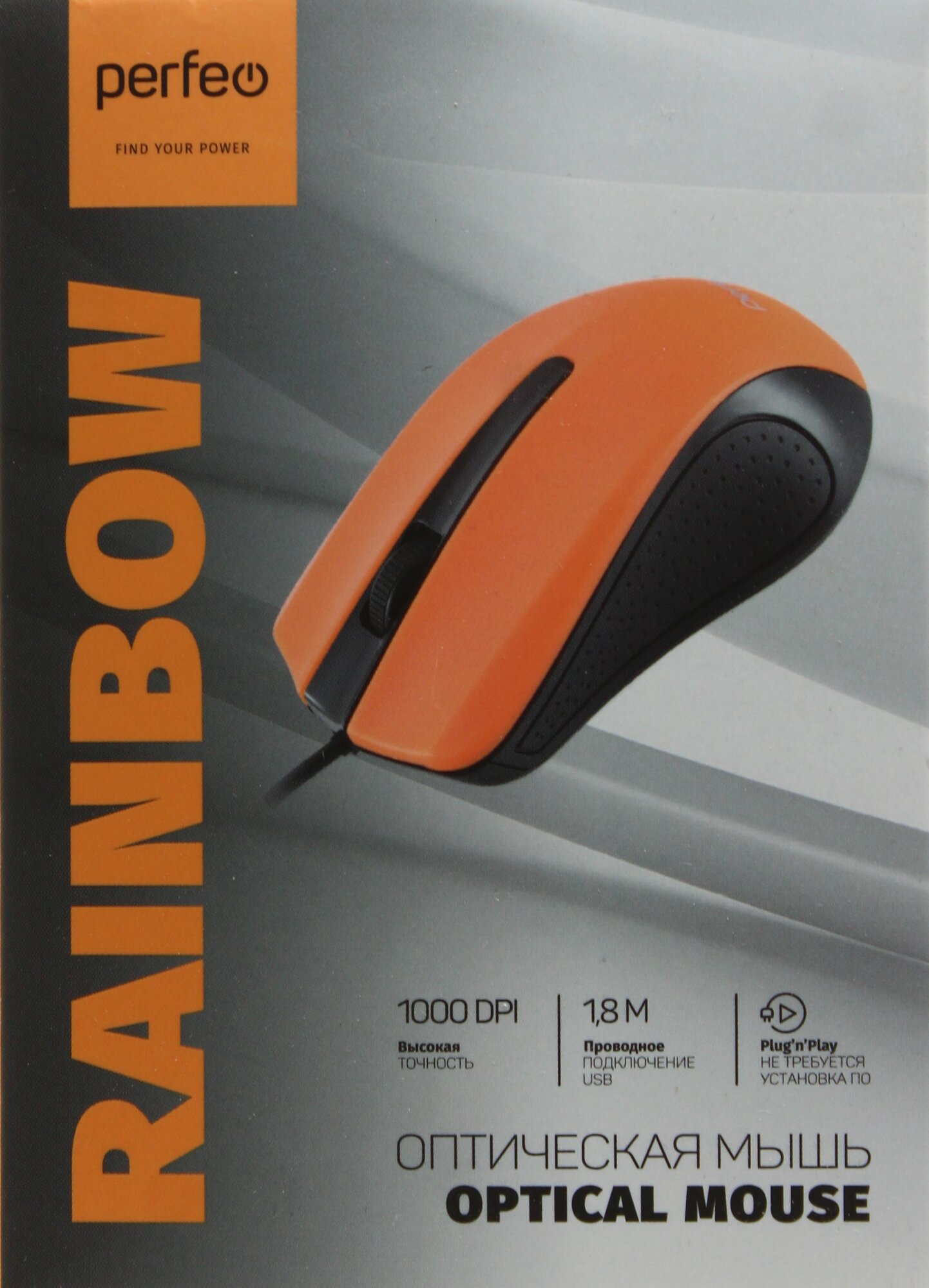 Мышь проводная PERFEO RAINBOW, черно-оранжевый