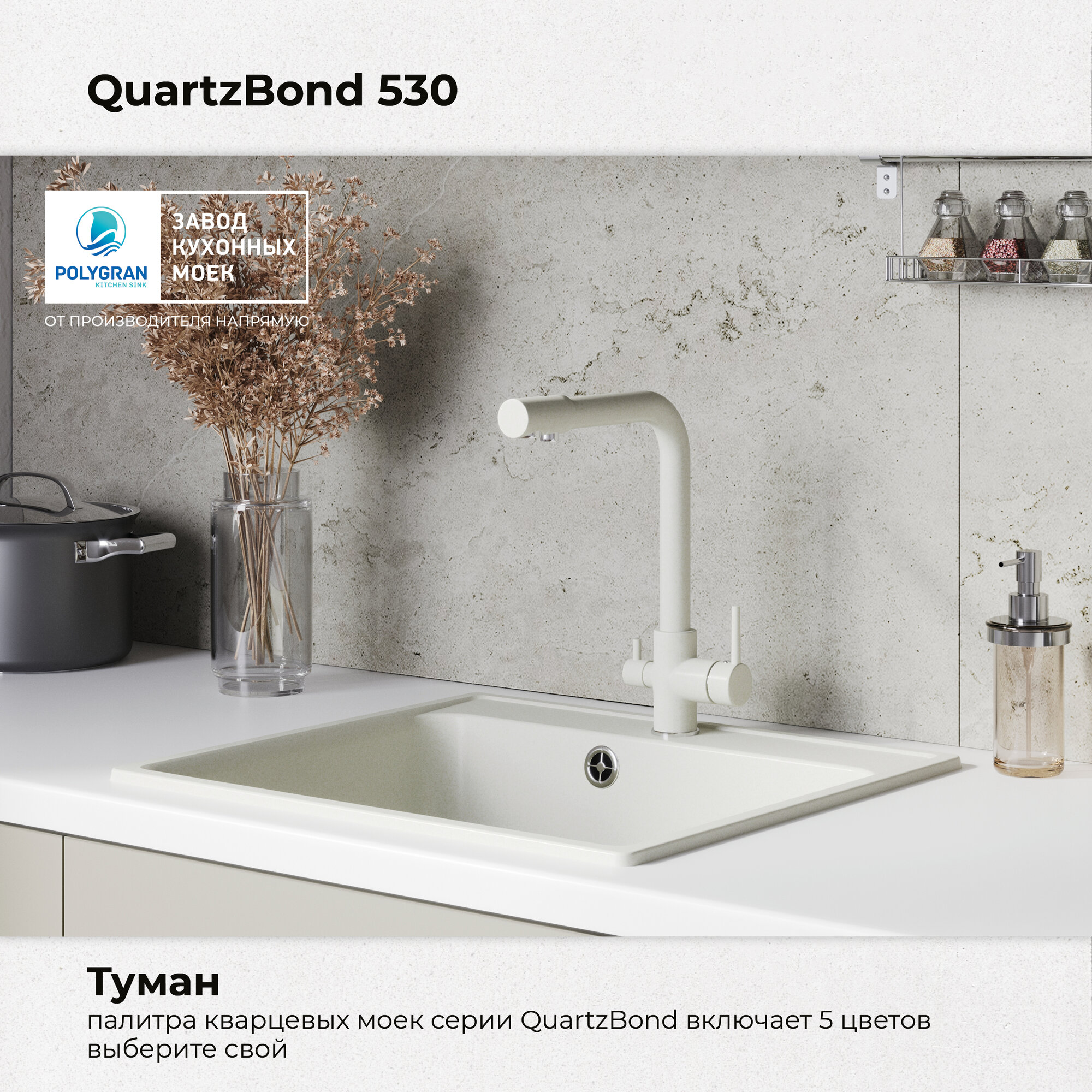 Кухонная мойка Polygran Quartz Bond 530 туман
