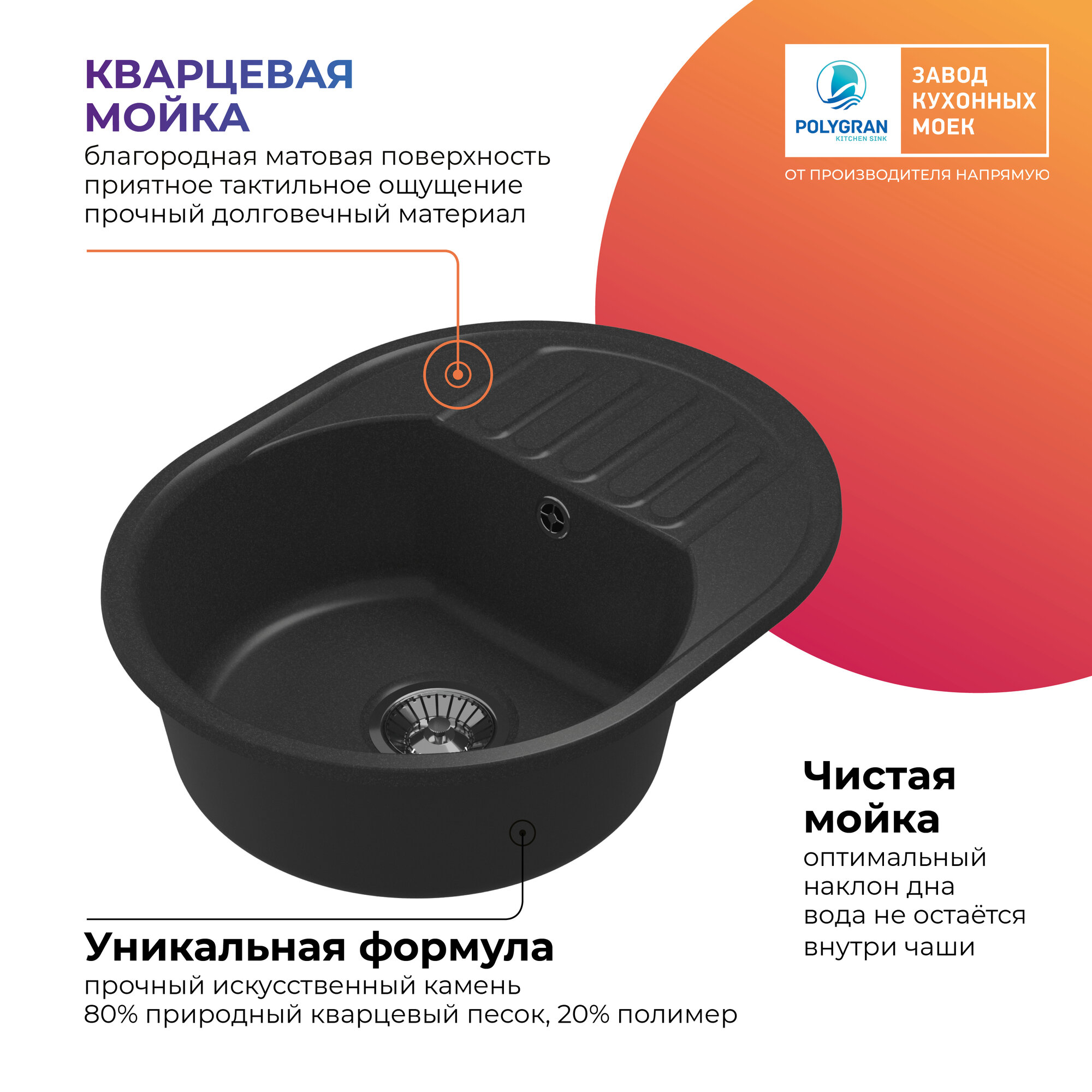 Мойка кухонная округлая Polygran Quartz Bond уголь (688193)