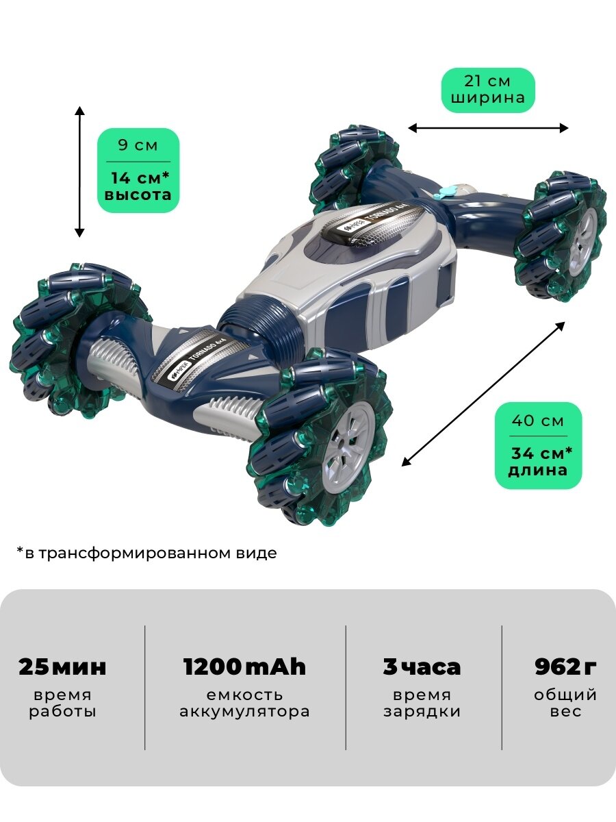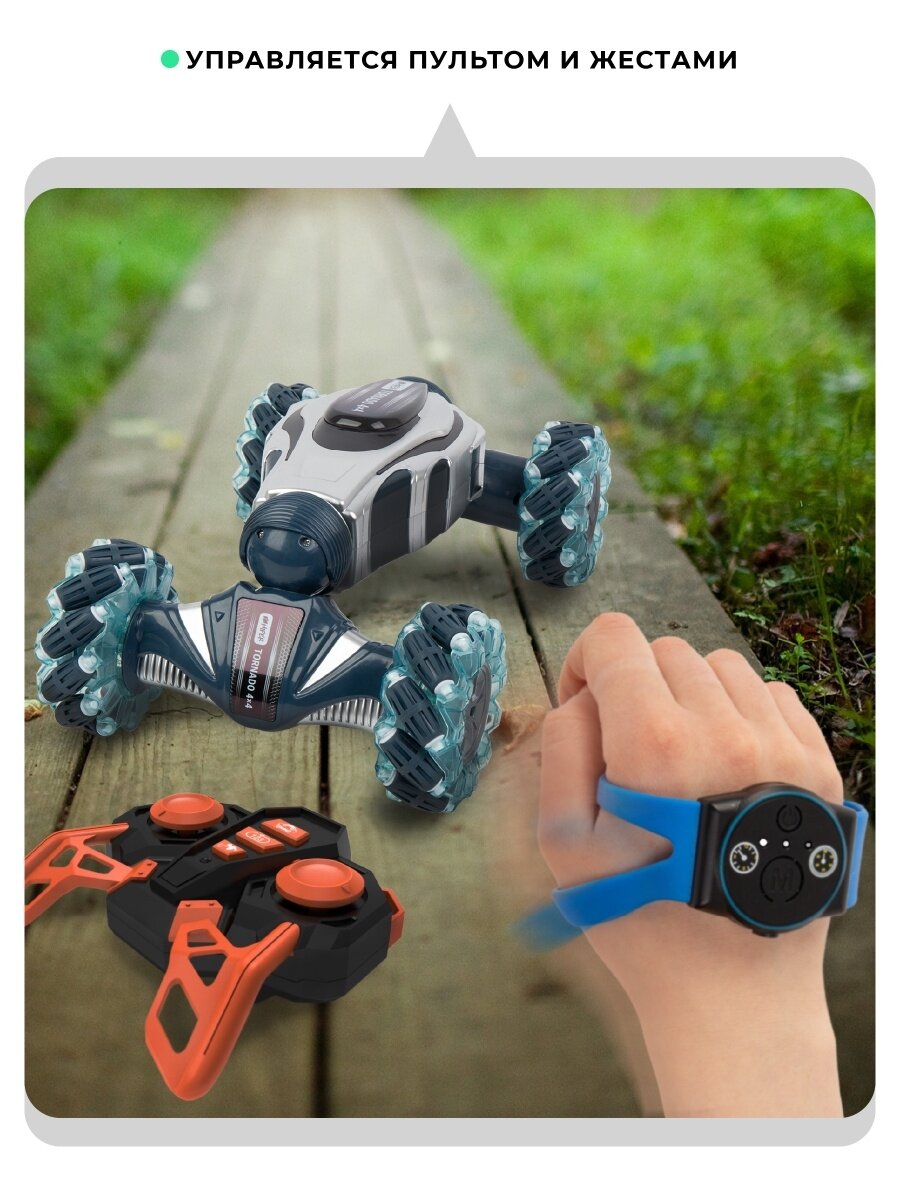 | Дополнительная информация | генератор пара, всенаправленные-роликовые колёса Mecanum, управление жестами при помощи браслета, два пульта управления, вращения на 360 градусов, машинка трансформер, функция демо режима; рекомендуется докупить: 2 батарейки AА |
