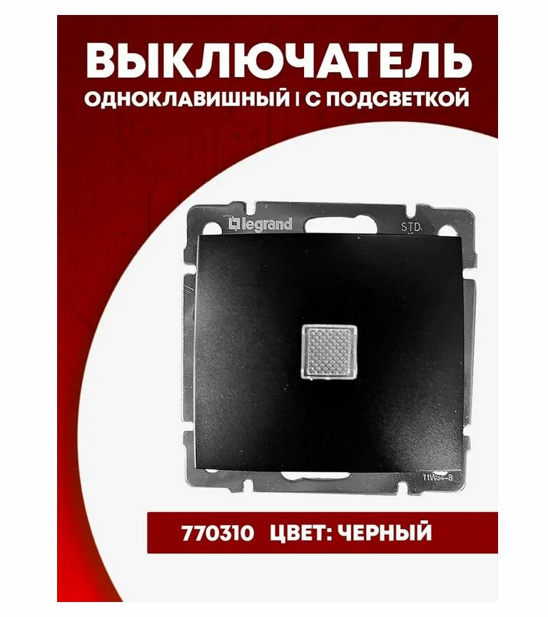 LEGRAND VALENA выключатель 1-кл с подсветкой черный 770310 1 шт