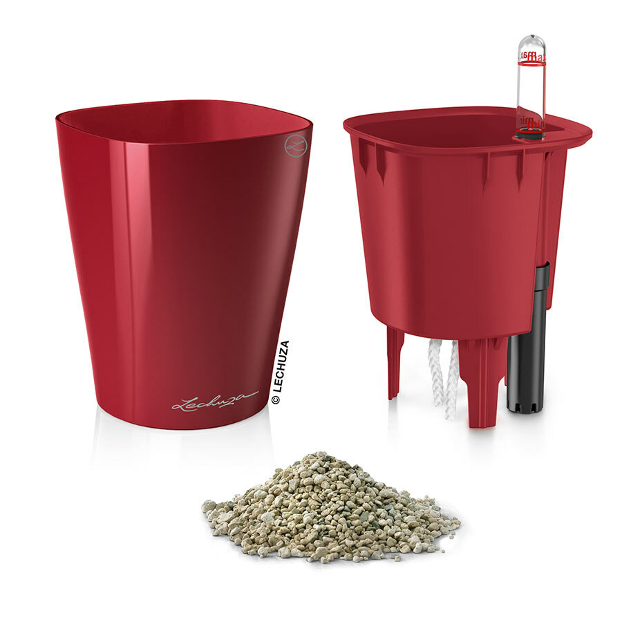 Настольное кашпо LECHUZA MINI-DELTINI красное с системой полива и субстратом, диаметр 10 см, высота 13 см