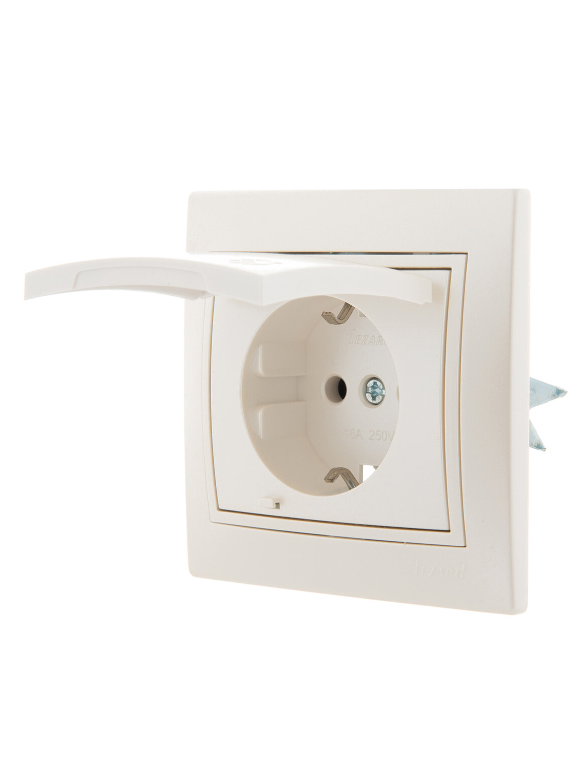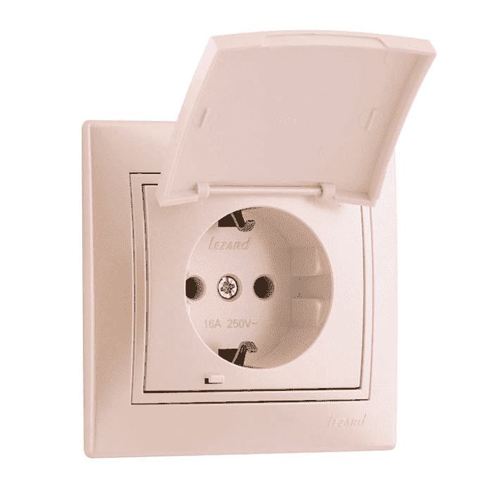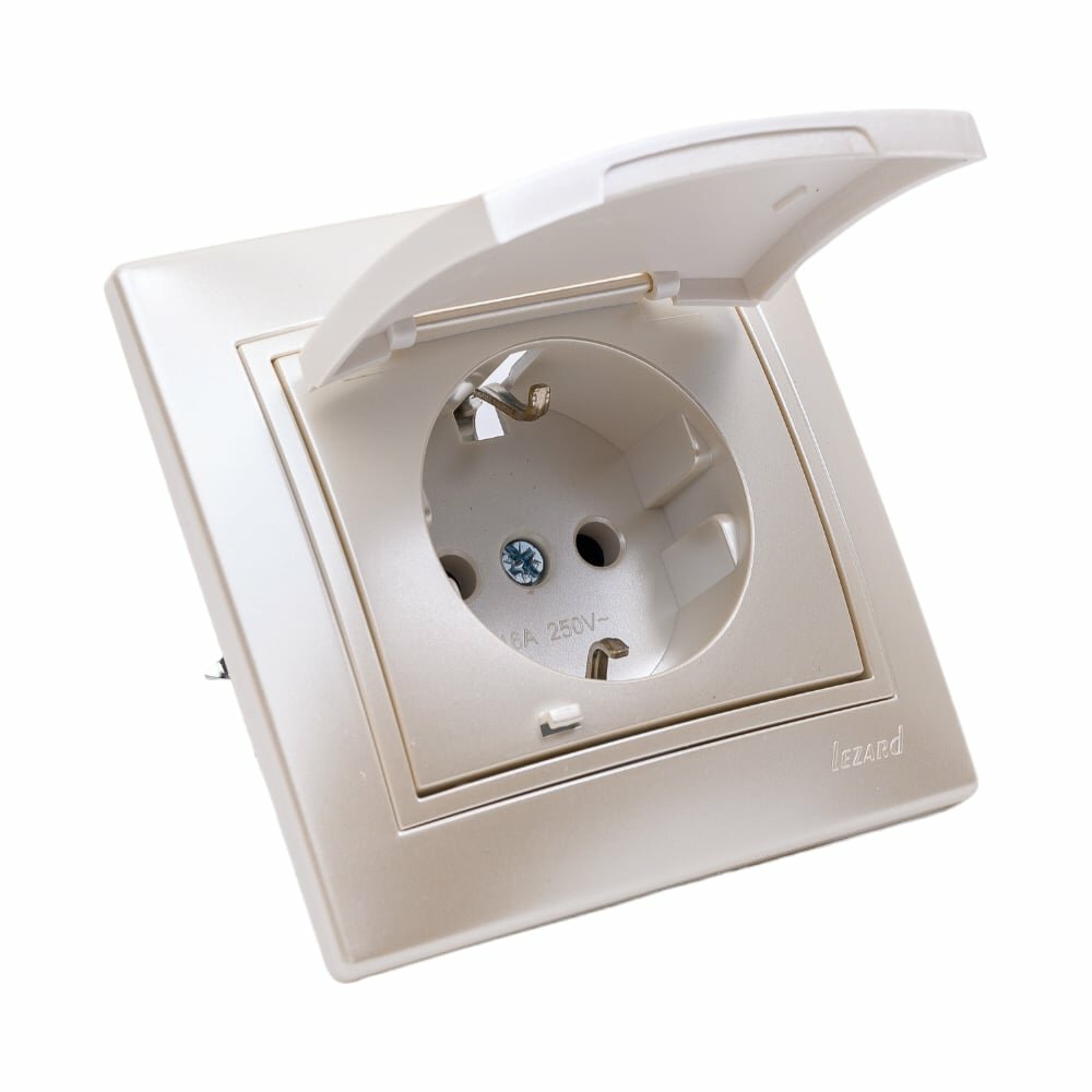 Розетка LEZARD MIRA с заземлением с крышкой керамика кремовой со вставкой
