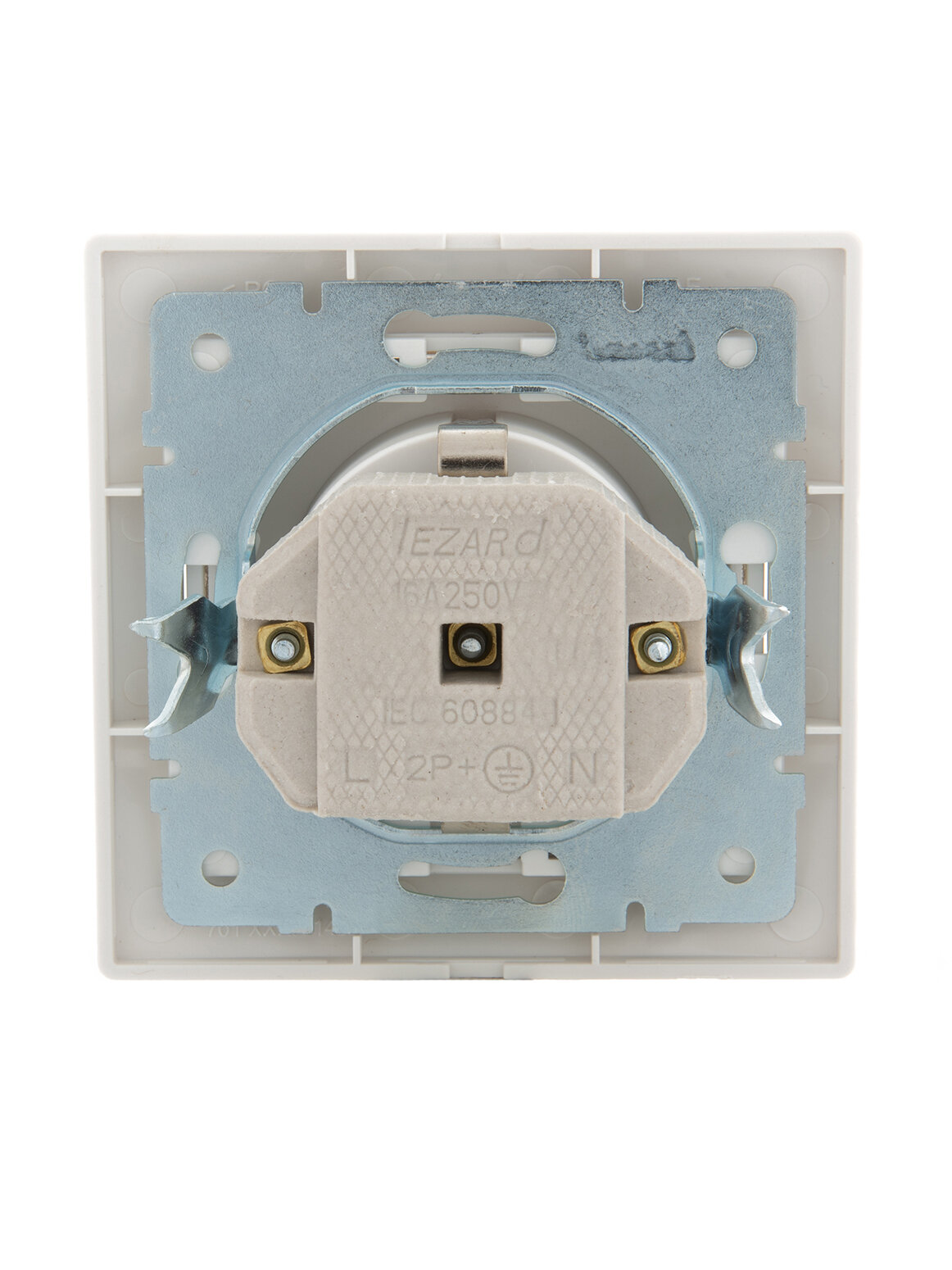 701-0215-123 Розетка 1-м СП Mira 16А IP20 с заземл. с защ. крышкой с сер. вставкой керамика бел. LEZARD