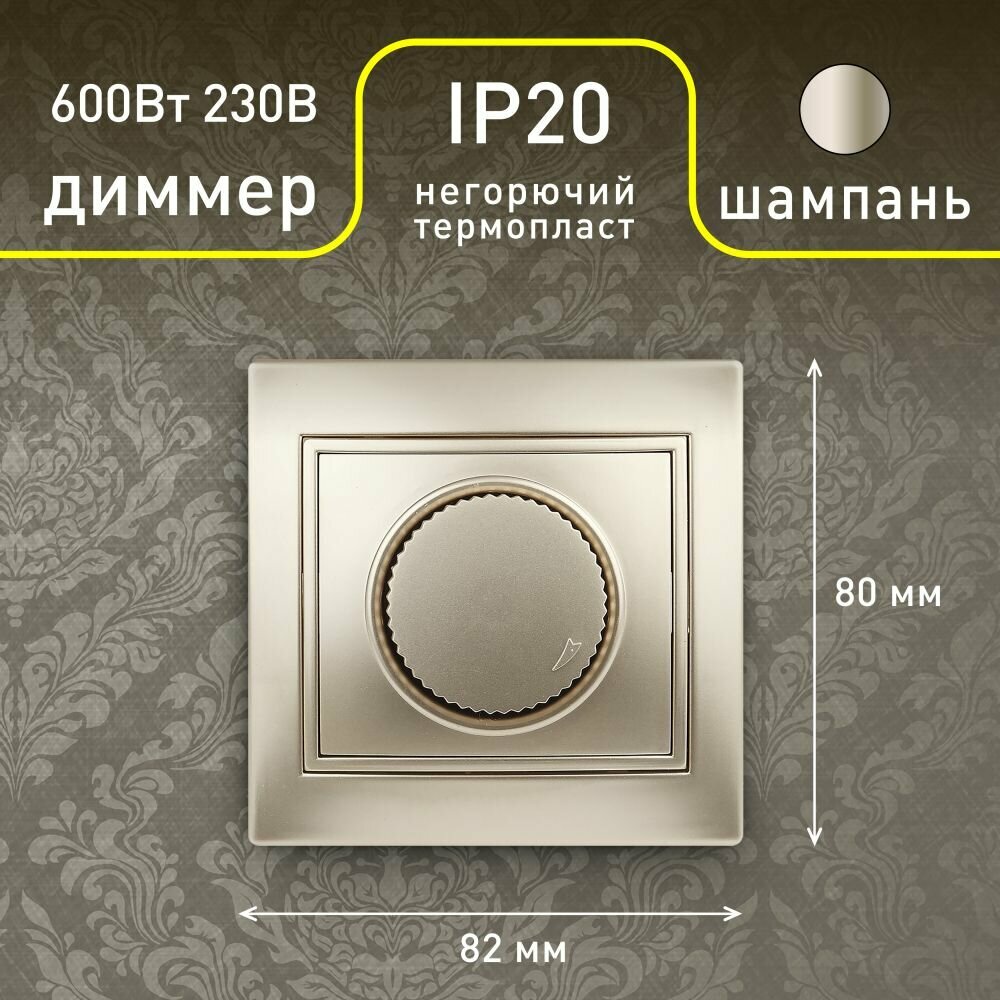 Купить Диммер поворотный Intro Plano 1-401-04 скрытой установки 600ВА 230В шампань