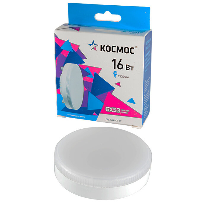 Купить Светодиодная лампа Космос, 16 Вт, GX53, 4500 K, таблетка, Lksm_LED16wGX5345C, нейтральный белый