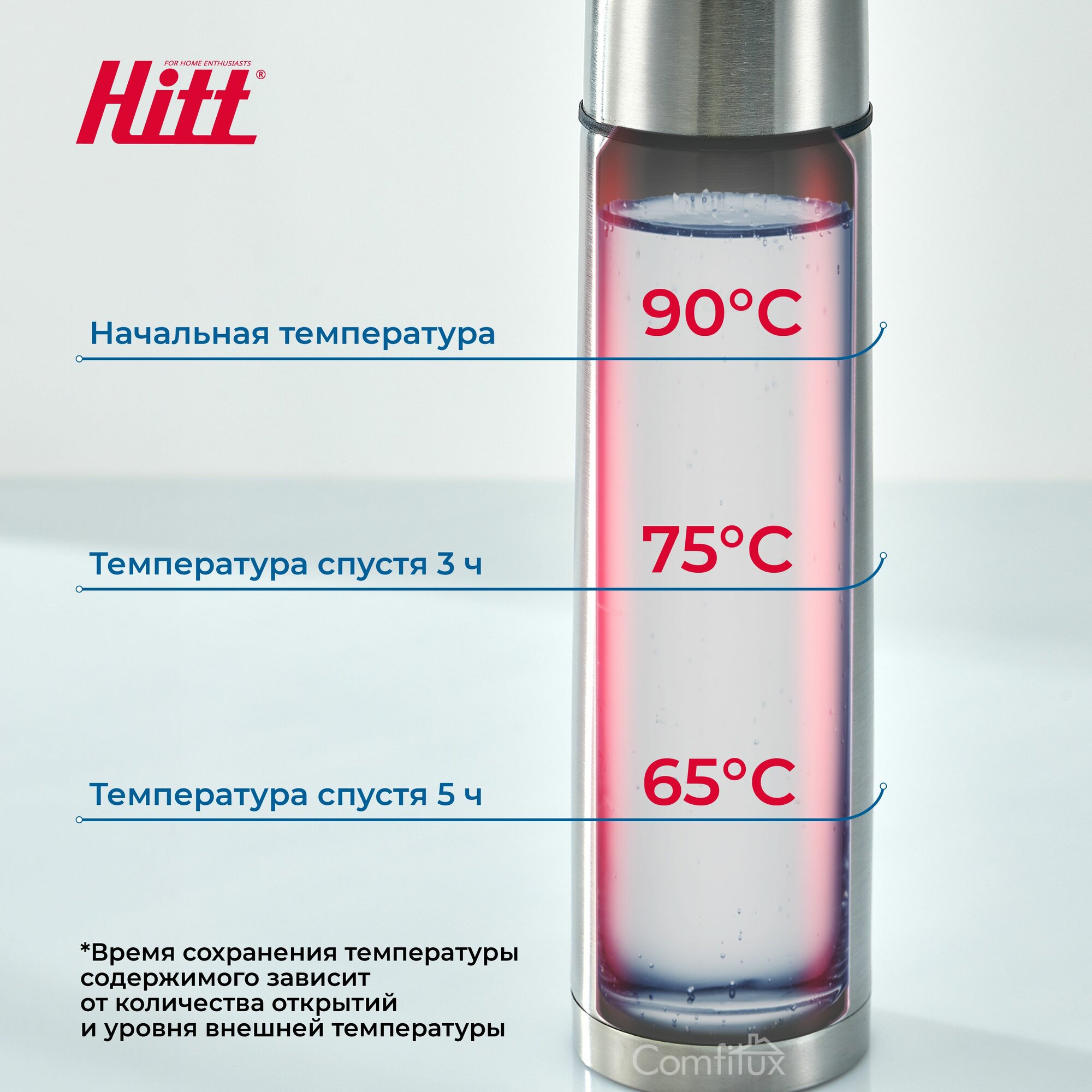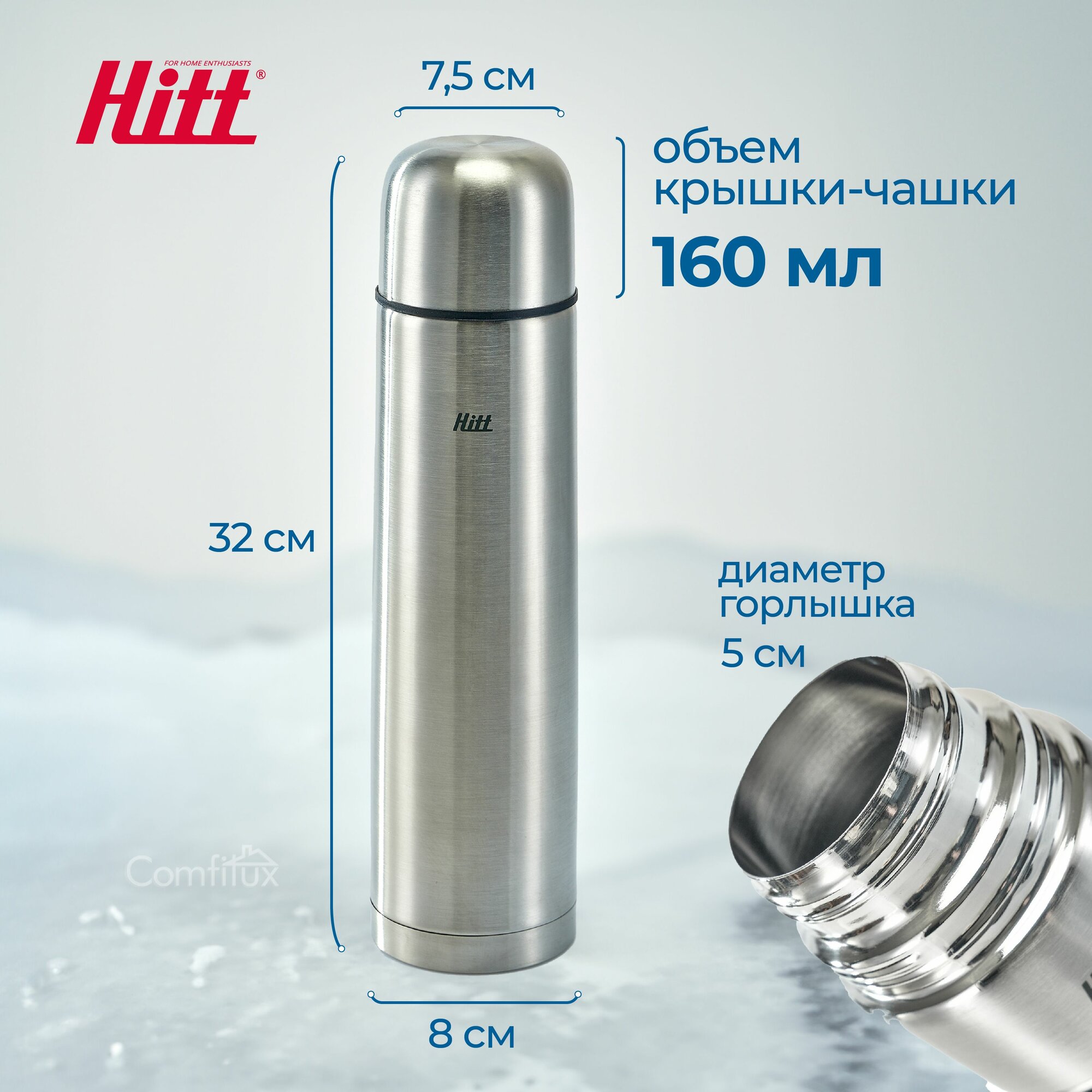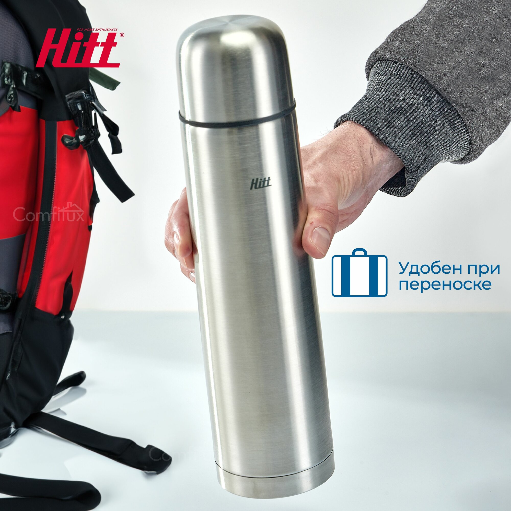 Термос 1 литр Hitt для чая, для кофе, из нержавеющей стали