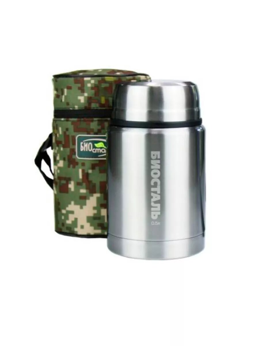 Термос для еды Biostal Охота (0,5 литра), с термочехлом, стальной