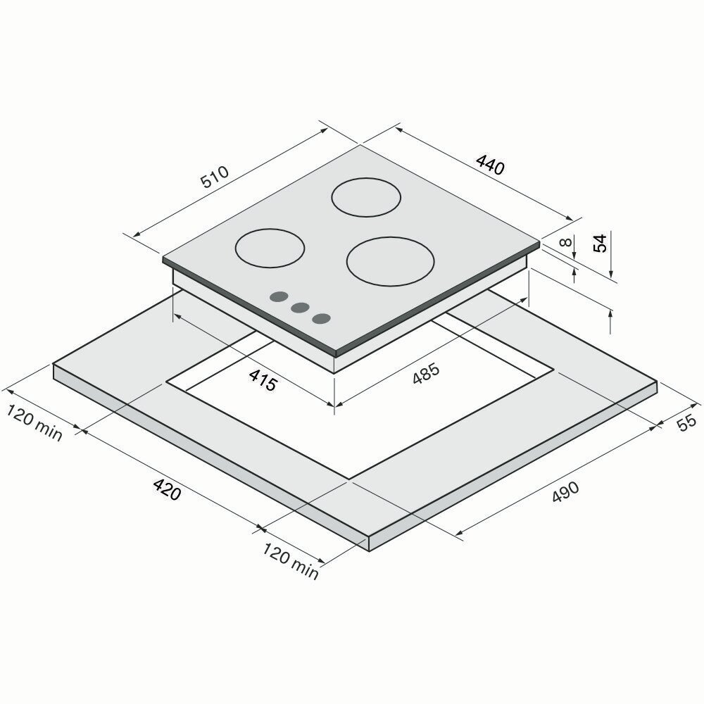 | Общее количество конфорок | 3 |